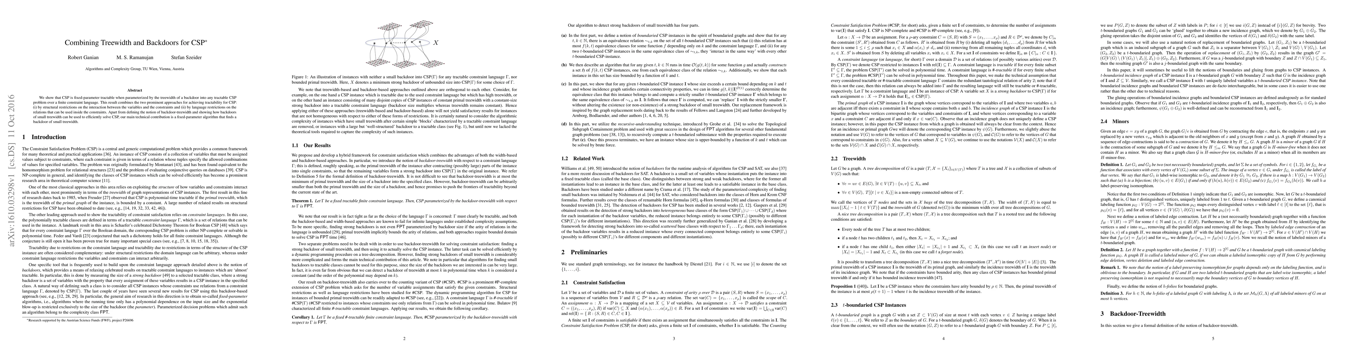 This paper demonstrates that Constraint Satisfaction Problems (CSP) are fixed-parameter tractable when parameterized by the treewidth of a backdoor into any tractable CSP problem. The authors combine structural and language restrictions to achieve tractability and present a fixed-parameter algorithm to find such backdoors efficiently.