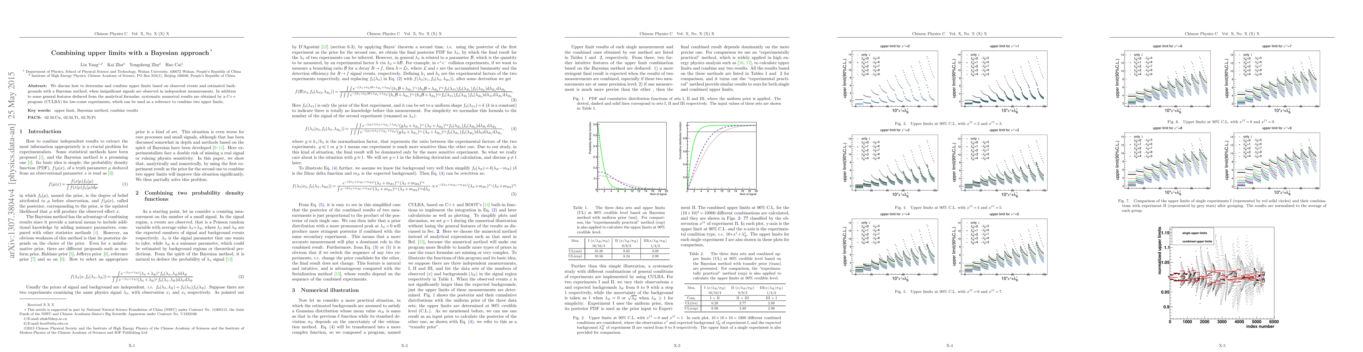 This paper presents a Bayesian method for combining upper limits from observed events and estimated backgrounds when insignificant signals are detected. It utilizes a C++ program (CULBA) for numerical results in low-count experiments, providing a reference for combining two upper limits.