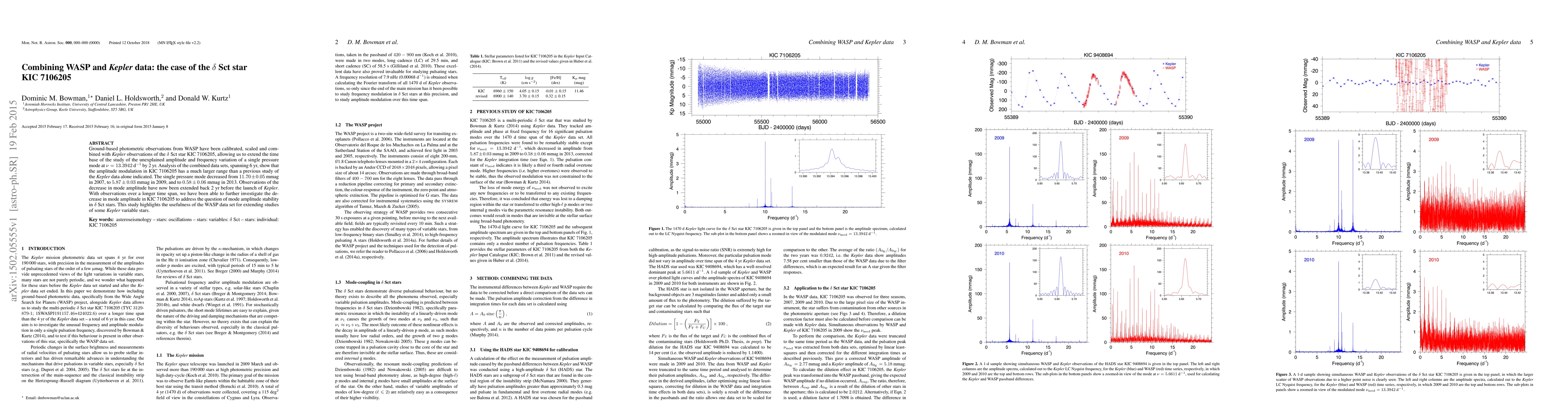 This study combines WASP and Kepler data to analyze the amplitude variation of the $\delta$ Sct star KIC 7106205 over a 6-year period, revealing a significant decrease in the amplitude of a single pressure mode. The findings extend the observation period by 2 years, providing a more comprehensive view of the mode's amplitude stability.