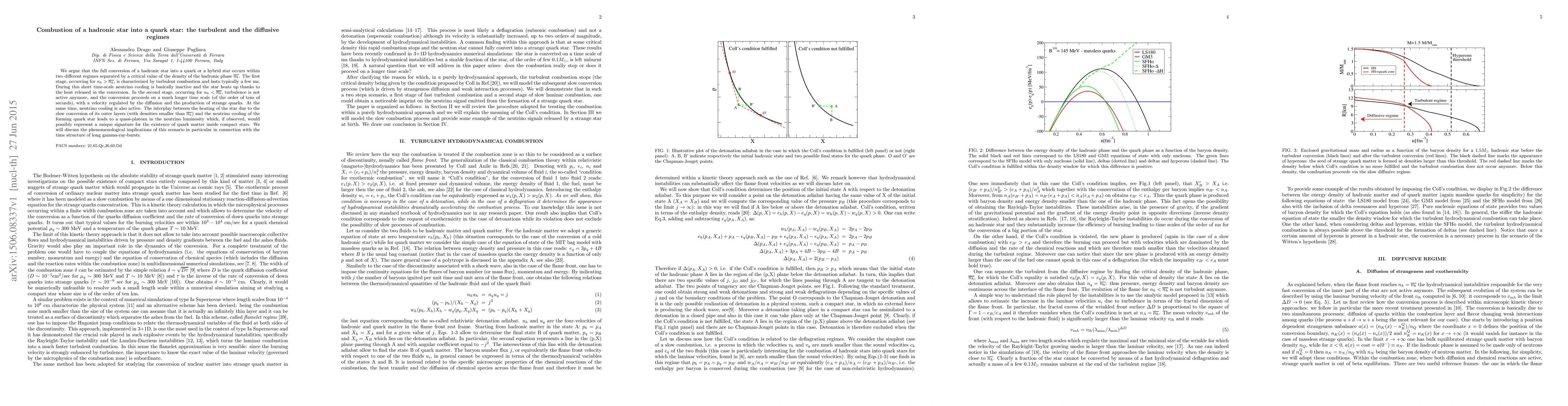 We argue that the full conversion of a hadronic star into a quark or a hybrid star occurs within two different regimes separated by a critical value of the density of the hadronic phase $\overline{n_h}$. The first stage, occurring for $n_h>\overline{n_h}$, is characterized by turbulent combustion and lasts typically a few ms. During this short time-scale neutrino cooling is basically inactive and the star heats up thanks to the heat released in the conversion. In the second stage, occurring for $n_h<\overline{n_h}$, turbulence is not active anymore, and the conversion proceeds on a much longer time scale (of the order of tens of seconds), with a velocity regulated by the diffusion and the production of strange quarks. At the same time, neutrino cooling is also active. The interplay between the heating of the star due to the slow conversion of its outer layers (with densities smaller than $\overline{n_h}$) and the neutrino cooling of the forming quark star leads to a quasi-plateau in the neutrino luminosity which, if observed, would possibly represent a unique signature for the existence of quark matter inside compact stars. We will discuss the phenomenological implications of this scenario in particular in connection with the time structure of long gamma-ray-bursts.