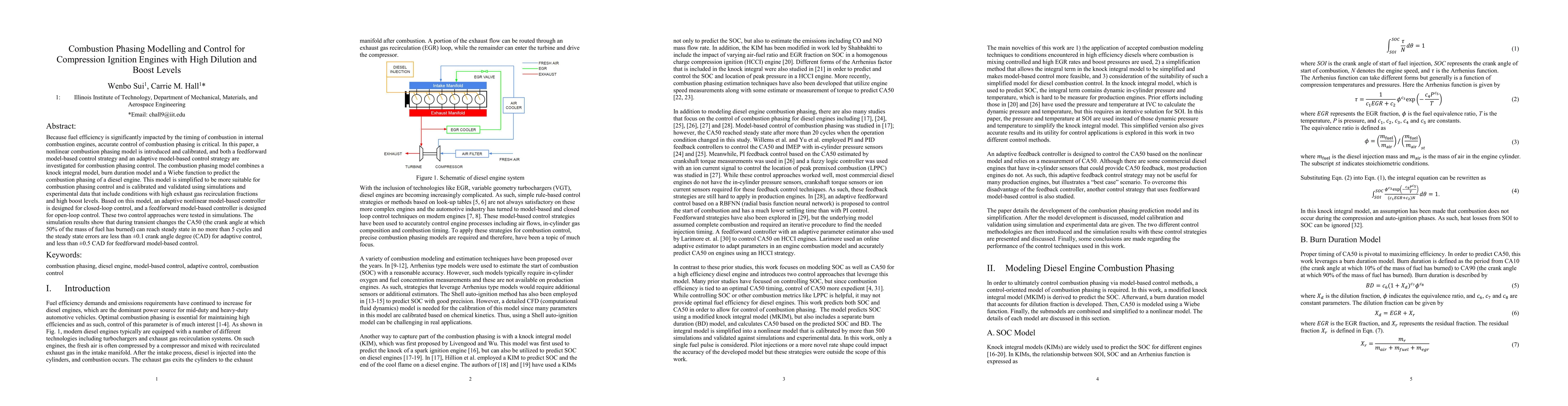 This paper introduces a nonlinear combustion phasing model for diesel engines, combining a knock integral model, burn duration model, and Wiebe function. It investigates both adaptive and feedforward model-based control strategies, showing that adaptive control achieves steady state within 5 cycles with errors less than +/-0.1 CAD, while feedforward control has errors less than +/-0.5 CAD.