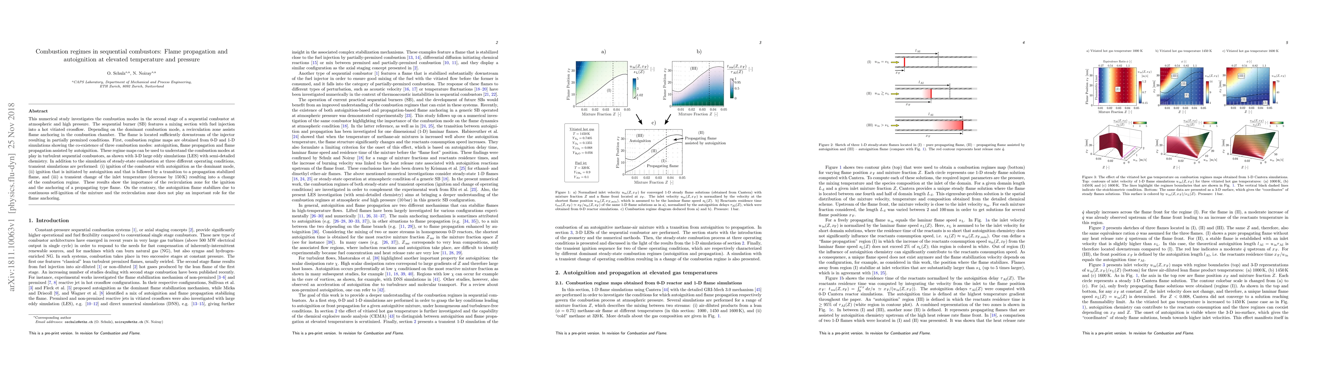 This study numerically explores combustion regimes in the second stage of a sequential combustor under varying pressures, identifying three modes: autoignition, flame propagation, and a hybrid. Simulations reveal the significance of recirculation zones in flame anchoring and the transition dynamics between combustion modes.