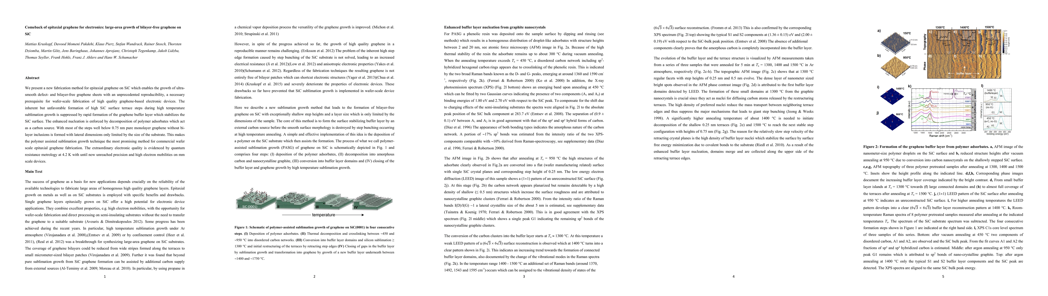 This research introduces a novel method for producing ultra-smooth, defect-free, bilayer-free epitaxial graphene on SiC, crucial for high-quality electronic devices, by suppressing terrace steps during growth and utilizing a polymer-assisted sublimation technique. The method achieves exceptional electronic properties as demonstrated by quantum resistance metrology and high electron mobility.