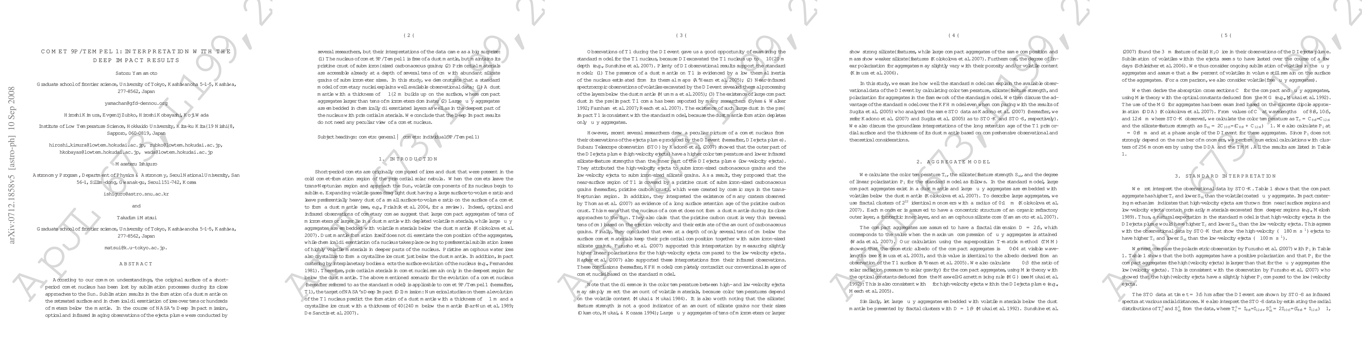 A new study analyzes NASA's Deep Impact data on comet 9P/Tempel 1, concluding that its nucleus lacks a dust mantle, with pristine crusts of carbonaceous grains at the surface and primordial materials accessible just tens of cm below.