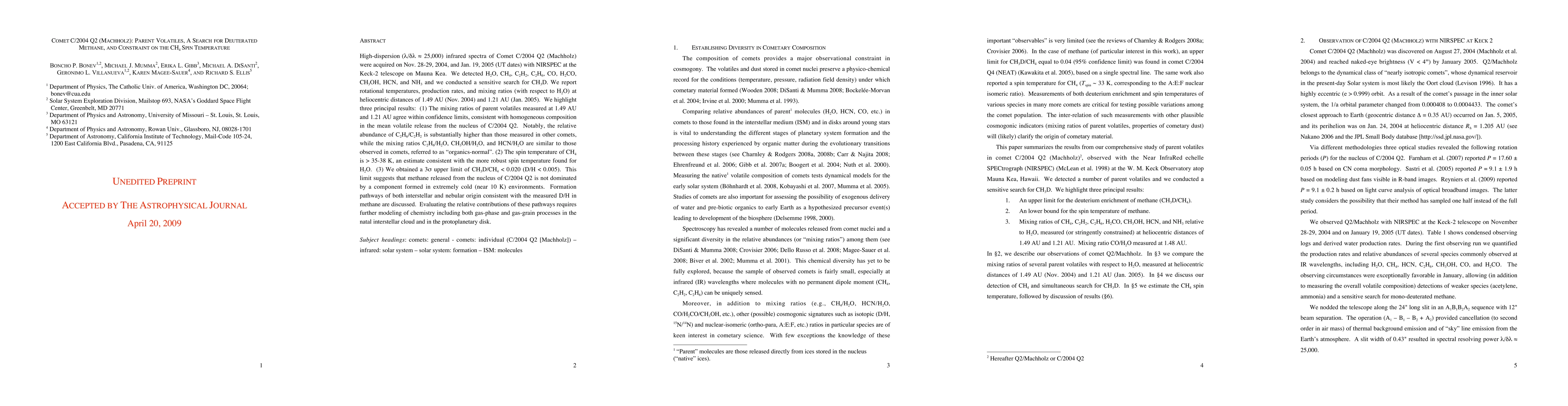 Astronomers analyzed comet C/2004 Q2 (Machholz) to understand its composition, finding that it has a homogeneous volatile release and higher levels of certain organic compounds compared to other comets.