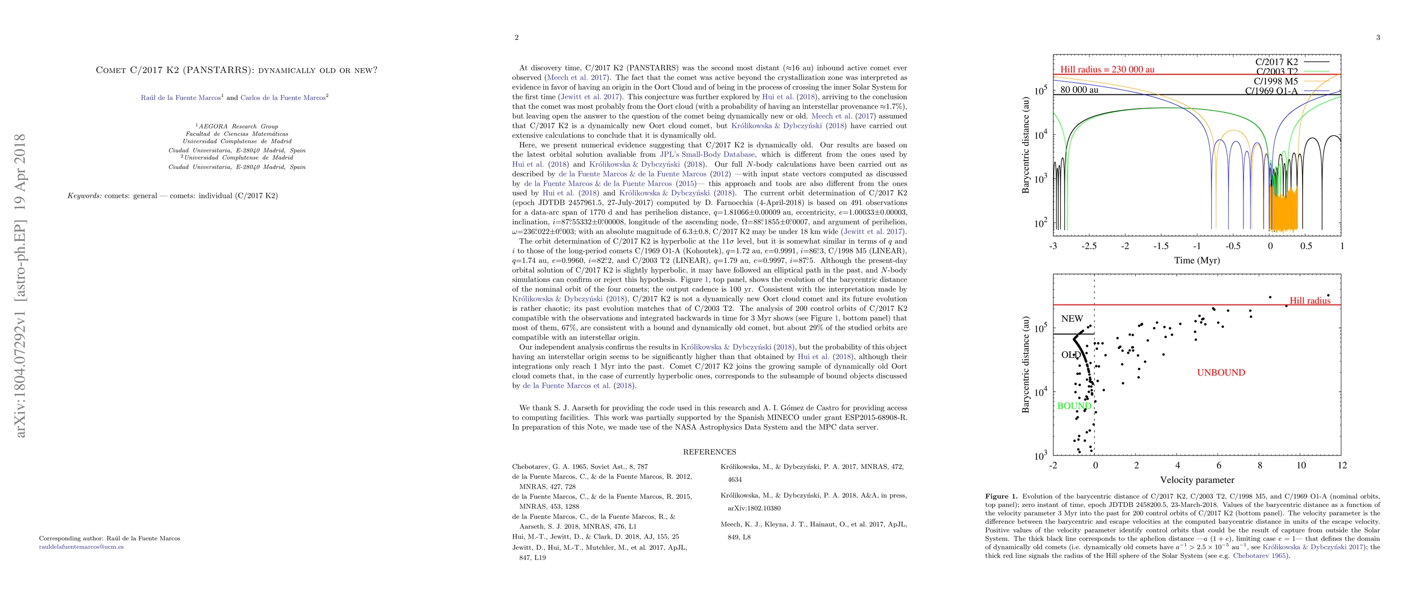 The paper investigates the origin of comet C/2017 K2 (PANSTARRS) through N-body simulations, concluding that 67% of the simulated orbits suggest it is a dynamically old Oort cloud comet, while 29% indicate a possible interstellar origin, thus refuting the idea of it being a dynamically new comet.
