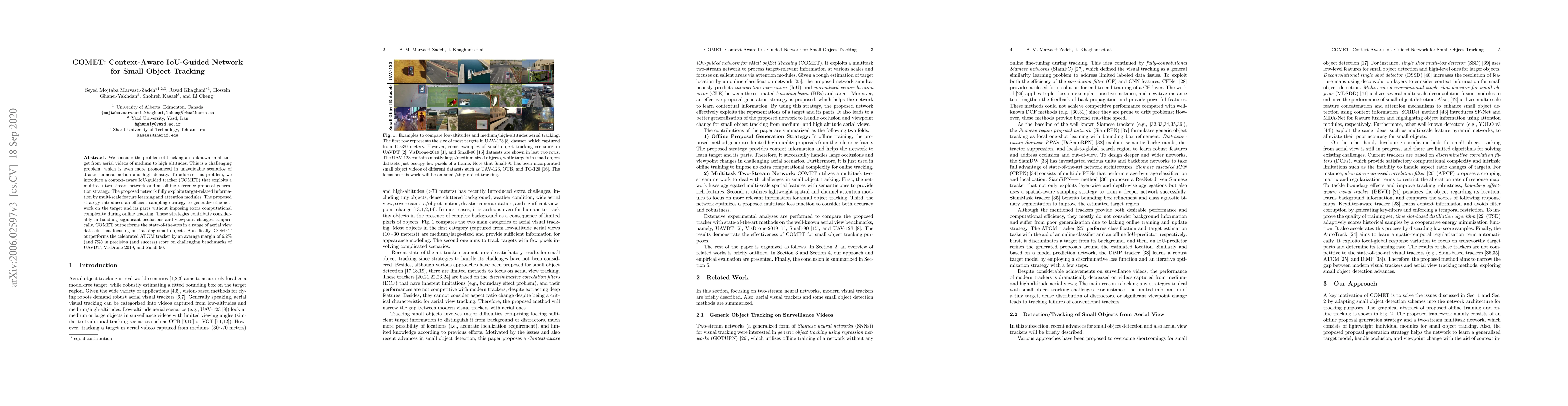 COMET is a context-aware tracker for small objects in aerial videos that outperforms state-of-the-art trackers with a 6.2% average margin of improvement on challenging benchmarks.