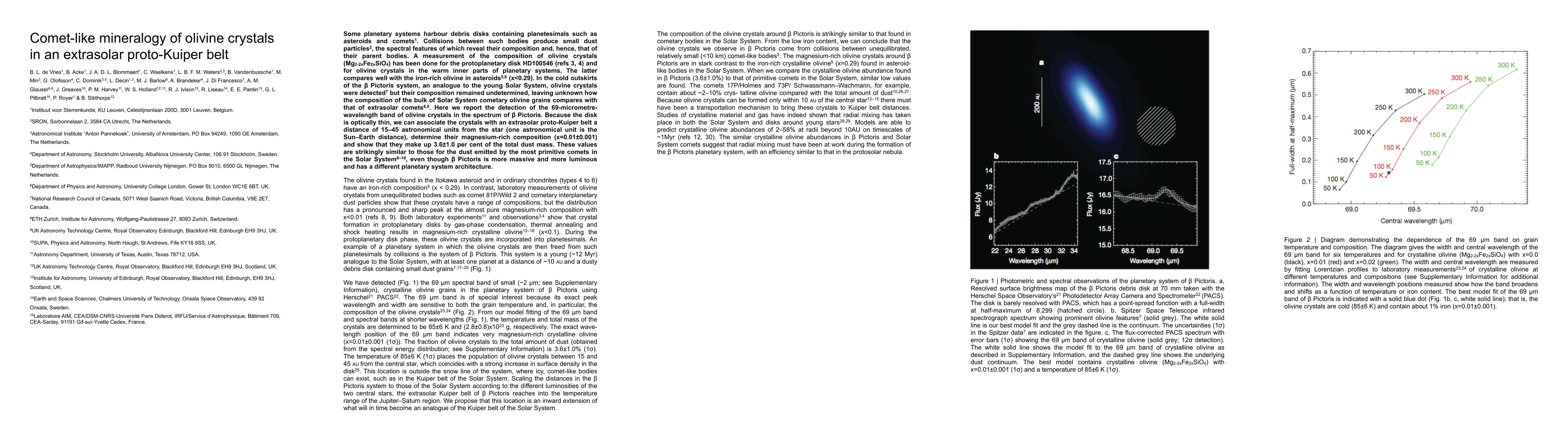 This study identifies magnesium-rich olivine crystals in the Beta Pictoris system's extrasolar proto-Kuiper belt, revealing a composition (x=0.01±0.001) similar to that of the most primitive Solar System comets, suggesting a common origin for cometary material in different planetary systems.