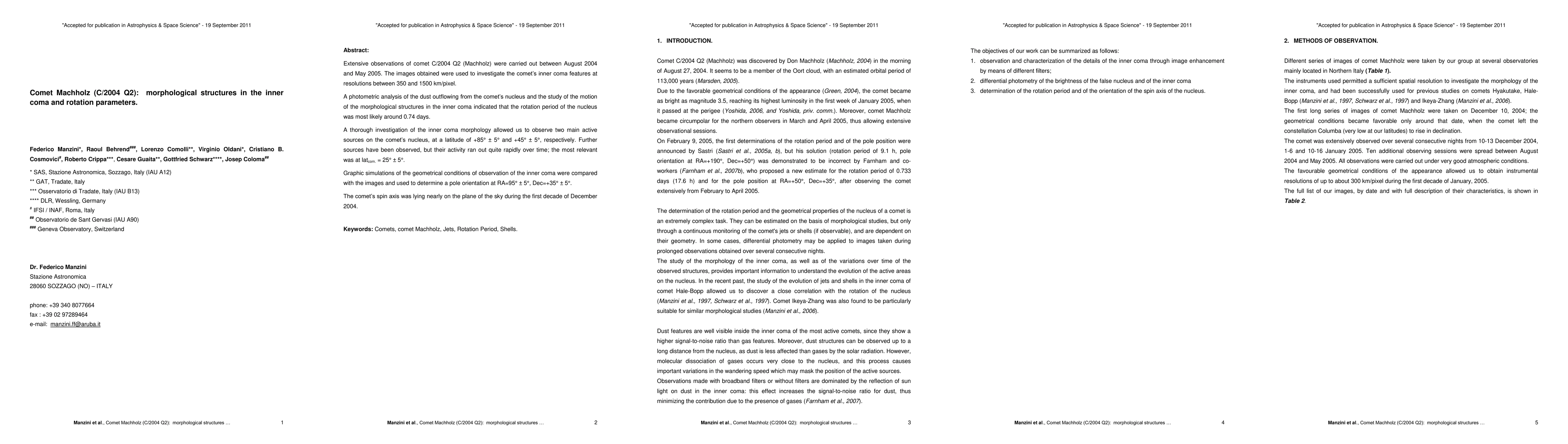 Scientists studied comet C/2004 Q2 (Machholz) and found two main active sources of dust on its nucleus, with a rotation period likely around 0.74 days.