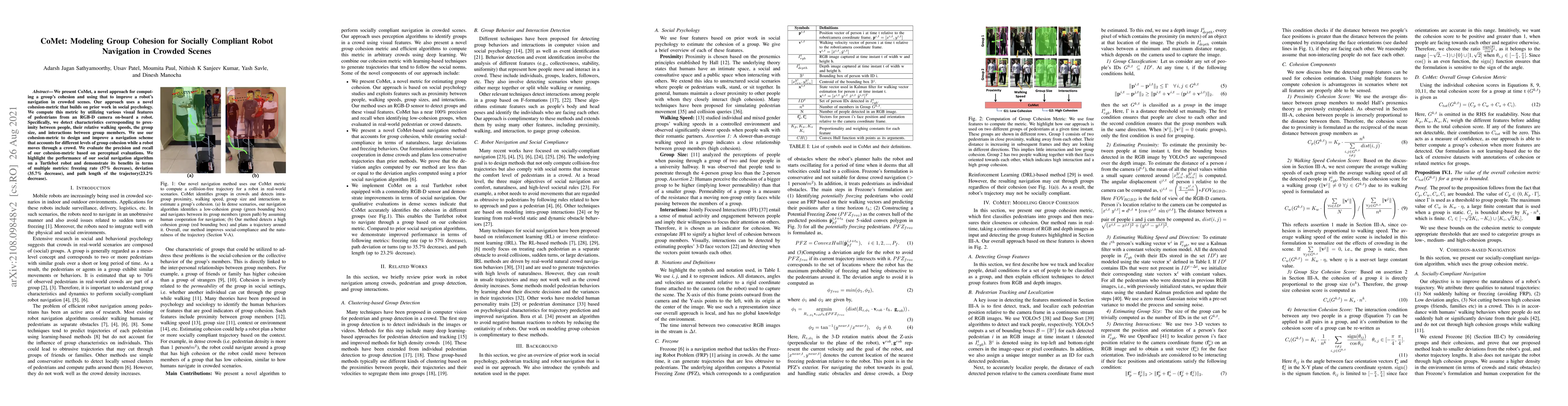 This research introduces CoMet, a method for measuring how tightly groups of people stick together, using visual data from a robot's camera. Incorporating this measure into navigation helps robots move more smoothly through crowds, reducing stopping and detours.
