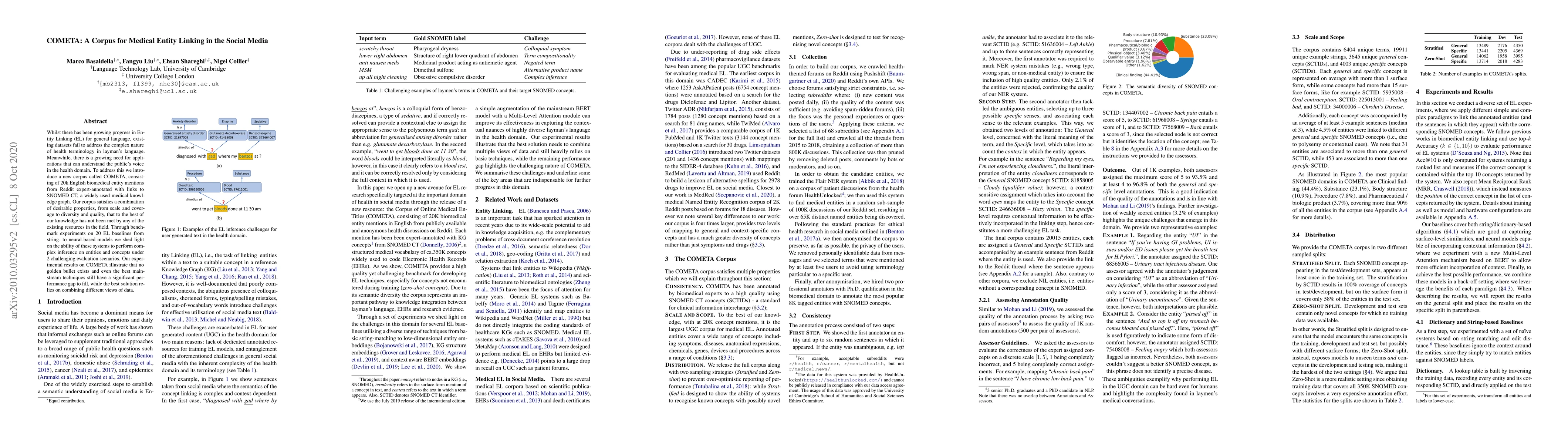 COMETA, a new corpus for medical entity linking in social media, offers a comprehensive dataset with 20k biomedical entity mentions annotated with SNOMED CT links, demonstrating the need for improved entity linking techniques in health domain applications.