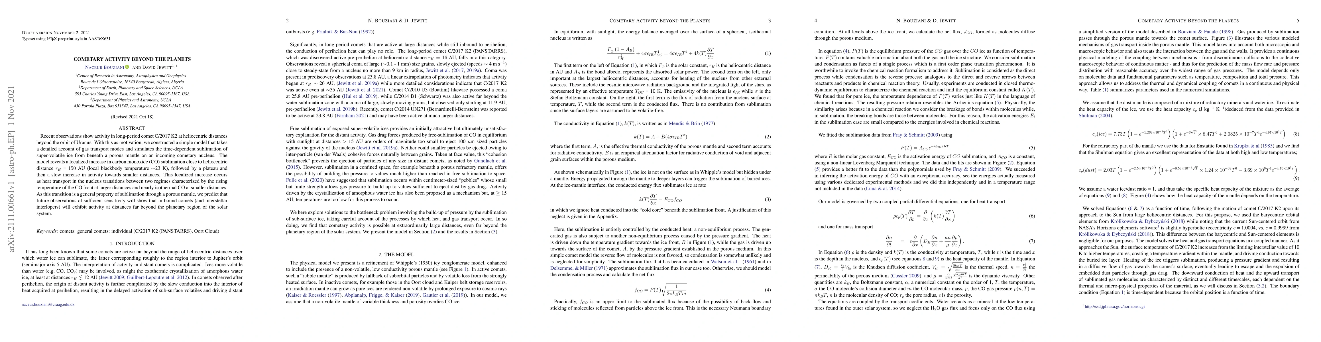Recent observations show activity in long-period comet C/2017 K2 at heliocentric distances beyond the orbit of Uranus. With this as motivation, we constructed a simple model that takes a detailed account of gas transport modes and simulates the time-dependent sublimation of super-volatile ice from beneath a porous mantle on an incoming cometary nucleus. The model reveals a localized increase in carbon monoxide (CO) sublimation close to heliocentric distance rH = 150 AU (local blackbody temperature around 23 K), followed by a plateau and then a slow increase in activity towards smaller distances. This localized increase occurs as heat transport in the nucleus transitions between two regimes characterized by the rising temperature of the CO front at larger distances and nearly isothermal CO at smaller distances. As this transition is a general property of sublimation through a porous mantle, we predict that future observations of sufficient sensitivity will show that inbound comets (and interstellar interlopers) will exhibit activity at distances far beyond the planetary region of the solar system.