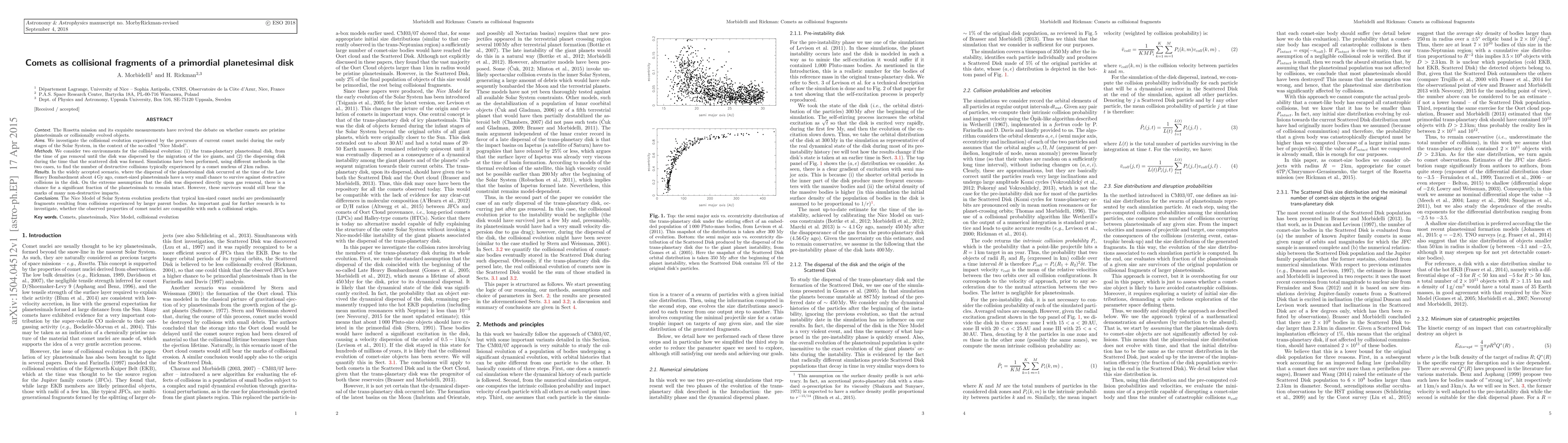 The research investigates the collisional history of comet nuclei in the context of the Nice Model, suggesting that typical km-sized comets are likely collisional fragments from larger parent bodies rather than pristine planetesimals. The study finds that while some intact planetesimals may survive early dispersal, they would still show evidence of numerous impacts.