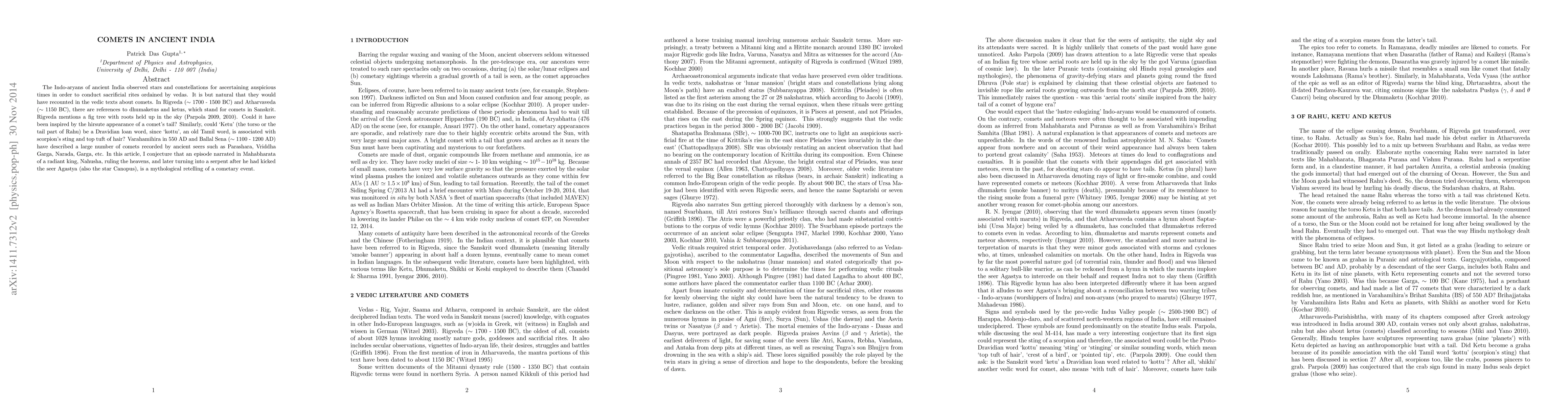 Researchers explore ancient Indian texts for references to comets, suggesting a mythological retelling of a cometary event in the Mahabharata, and find connections between comet descriptions and Hindu mythology.