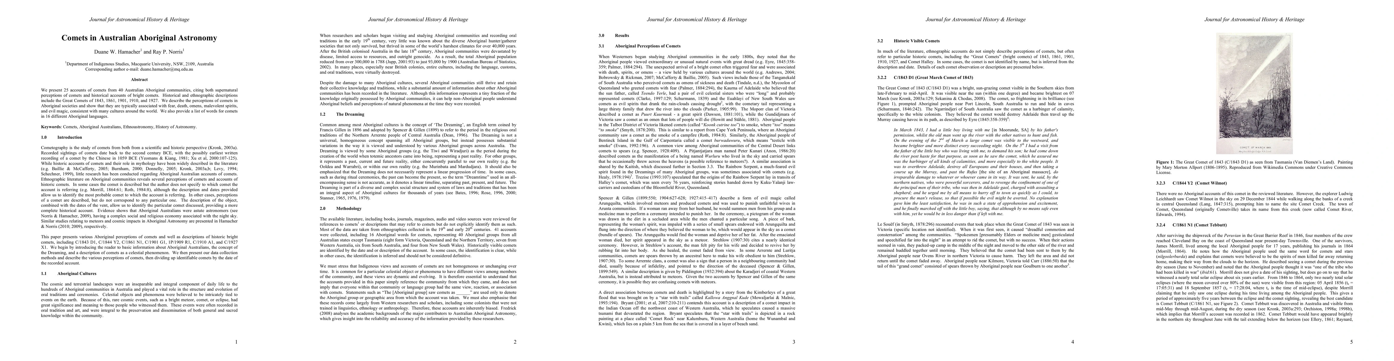 This paper compiles 25 accounts of comets from 40 Australian Aboriginal communities, highlighting their supernatural interpretations and historical observations of notable comets. It reveals that Aboriginal perceptions often link comets to fear, death, and malevolent spirits.