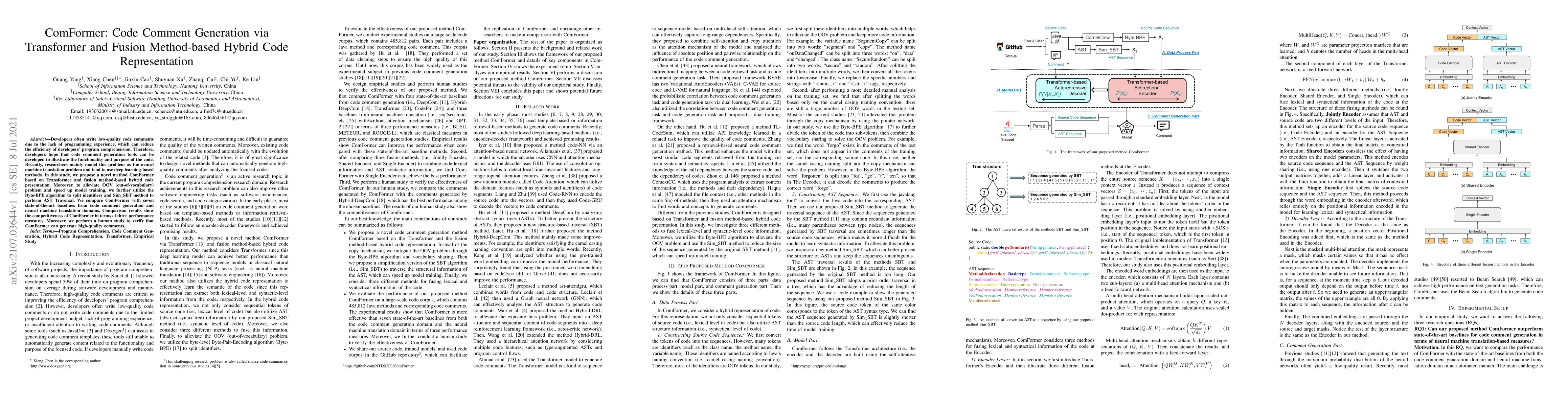 ComFormer is a novel method for generating code comments using a Transformer-based model combined with a fusion-based hybrid code representation. The study demonstrates ComFormer's effectiveness in generating high-quality comments, outperforming seven state-of-the-art baselines in various performance metrics and confirmed by a human study.