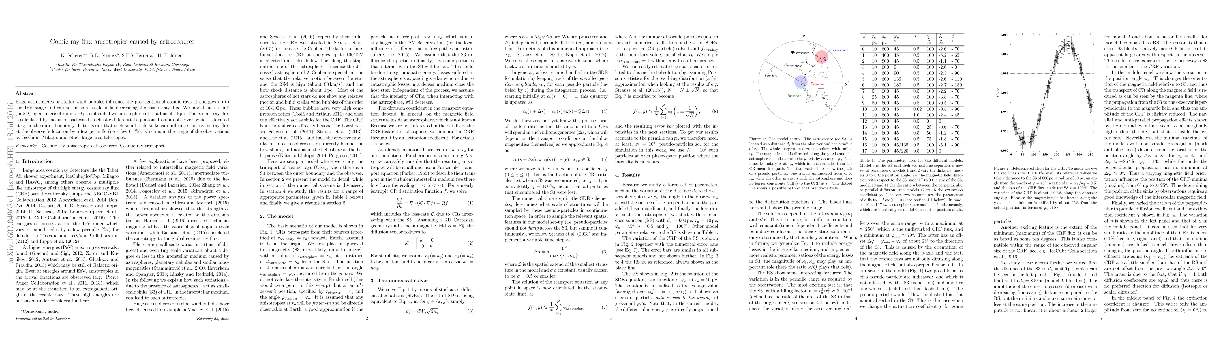 Huge astrospheres or stellar wind bubbles influence the propagation of cosmic rays at energies up to the TeV range and can act as small-scale sinks decreasing the cosmic ray flux. We model such a sink (in 2D) by a sphere of radius 10\,pc embedded within a sphere of a radius of 1\,kpc. The cosmic ray flux is calculated by means of backward stochastic differential equations from an observer, which is located at $r_{0}$, to the outer boundary. It turns out that such small-scale sinks can influence the cosmic ray flux at the observer's location by a few permille (i.e\ a few 0.1\%), which is in the range of the observations by IceCube, Milagro and other large area telescopes.