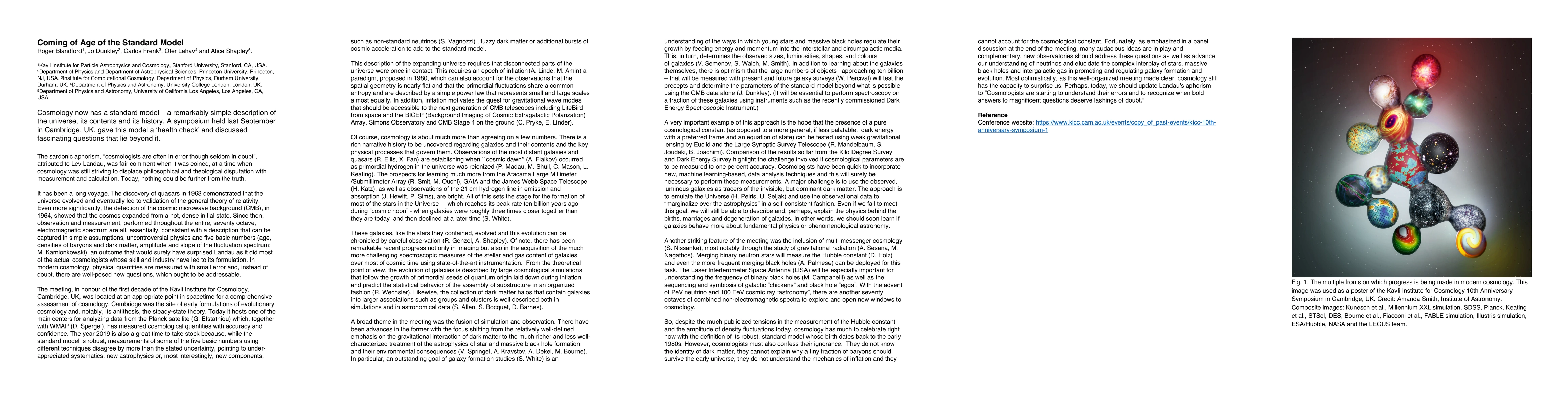 Cosmology now has a standard model - a remarkably simple description of the universe, its contents and its history. A symposium held last September in Cambridge, UK, gave this model a 'health check' and discussed fascinating questions that lie beyond it.