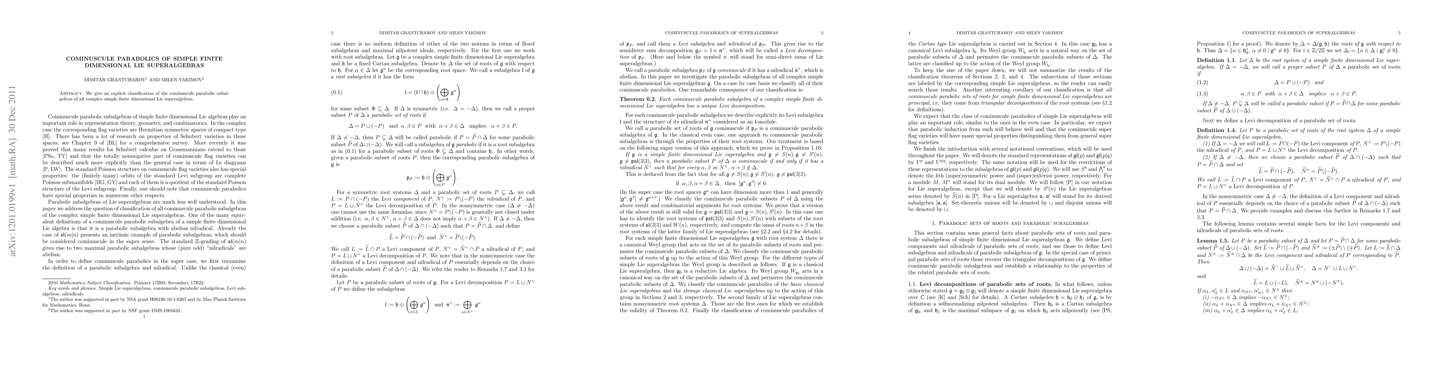 This paper provides a detailed classification of the cominuscule parabolic subalgebras for all complex simple finite-dimensional Lie superalgebras, offering explicit descriptions of these important subalgebras. The results contribute to the understanding of the structure and representation theory of Lie superalgebras.