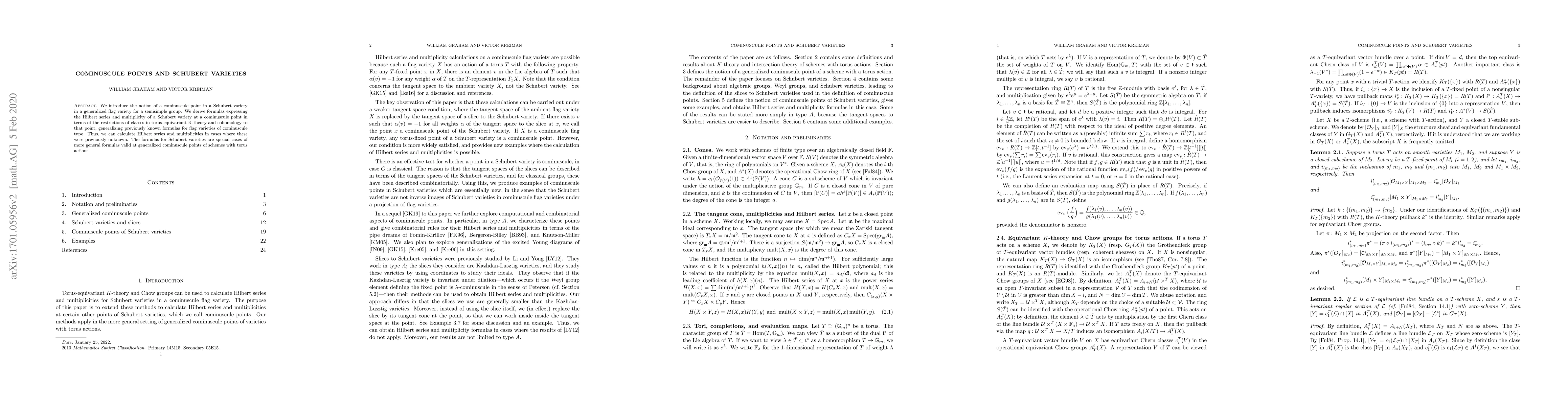 This paper introduces cominuscule points in Schubert varieties within generalized flag varieties for semisimple groups, deriving new formulas for their Hilbert series and multiplicities in terms of torus-equivariant K-theory and cohomology. These generalizations allow for the calculation of previously unknown Hilbert series and multiplicities.