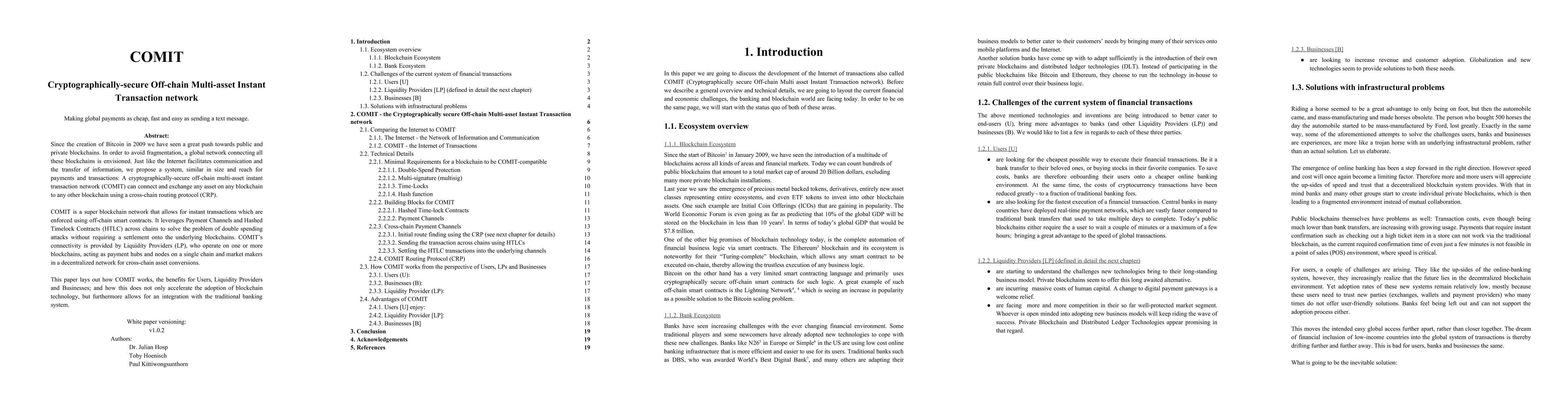 COMIT proposes a global network connecting various blockchains for secure, instant multi-asset transactions, accelerating blockchain adoption and integrating with traditional banking systems.