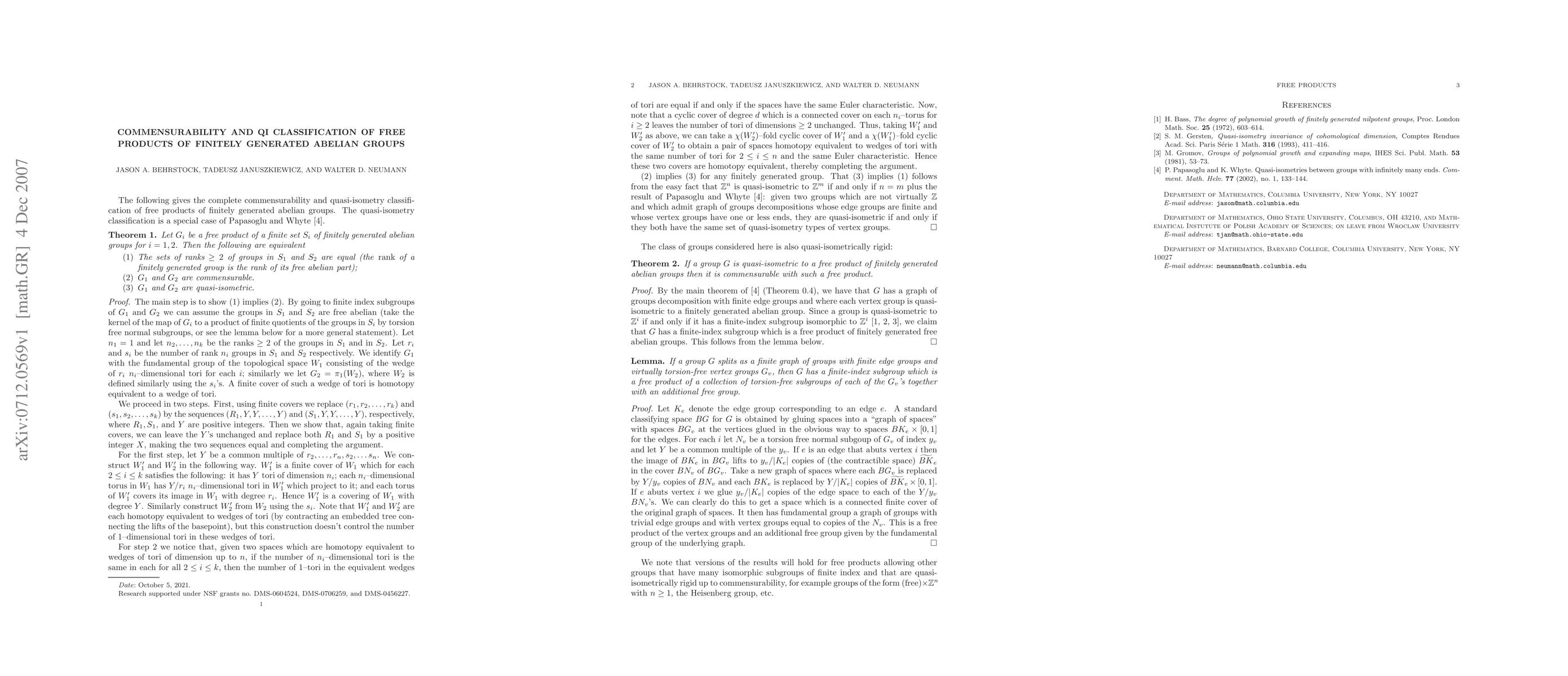 Summary: This paper explores the quasi-isometry classification of groups commensurable with free products of finitely generated abelian groups, showing that such groups are equivalent to free products of $\mathbb{Z}$ and $\mathbb{Z}^n$ for each rank $n$ present in the original set.