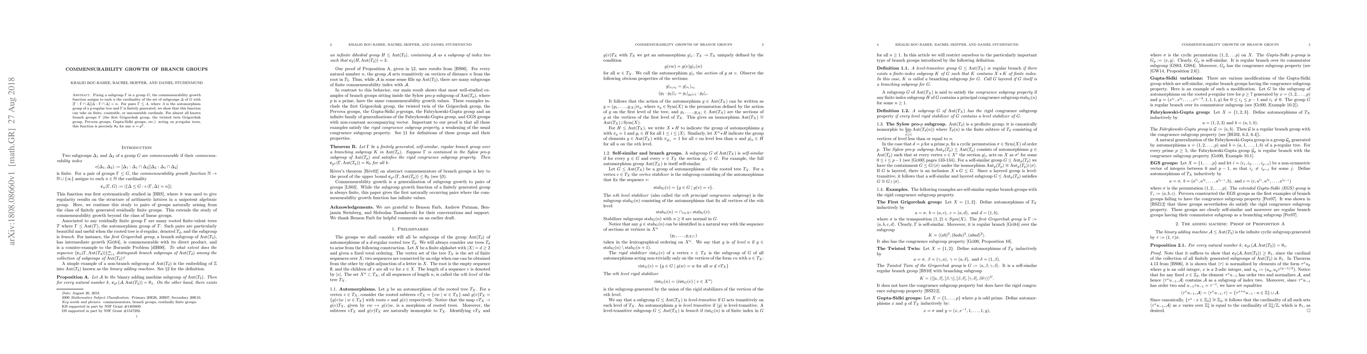 Fixing a subgroup $\Gamma$ in a group $G$, the commensurability growth function assigns to each $n$ the cardinality of the set of subgroups $\Delta$ of $G$ with $[\Gamma: \Gamma \cap \Delta][\Delta : \Gamma \cap \Delta] = n$. For pairs $\Gamma \leq A$, where $A$ is the automorphism group of a $p$-regular tree and $\Gamma$ is finitely generated, we show that this function can take on finite, countable, or uncountable cardinals. For almost all known branch groups $\Gamma$ (the first Grigorchuk group, the twisted twin Grigorchuk group, Pervova groups, Gupta-Sidki groups, etc.) acting on $p$-regular trees, this function is precisely $\aleph_0$ for any $n = p^k$.