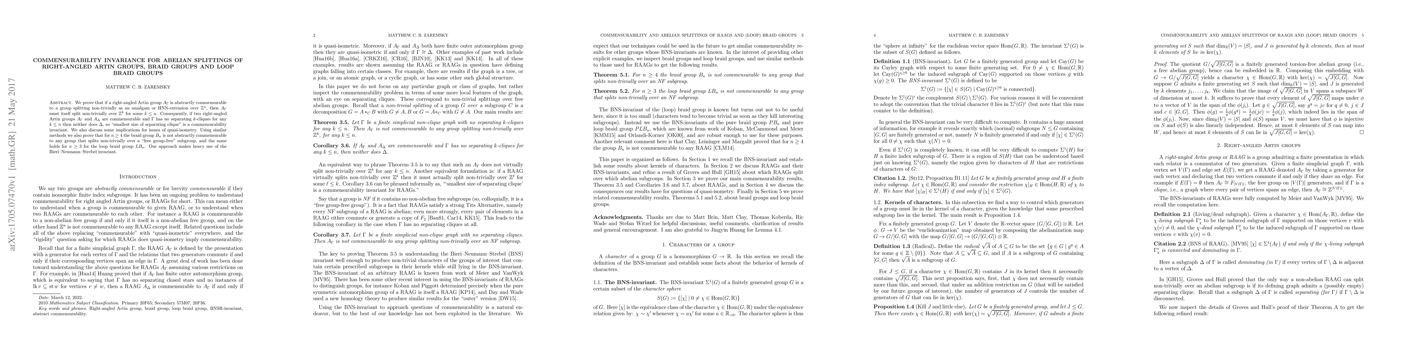 We prove that if a right-angled Artin group $A_\Gamma$ is abstractly commensurable to a group splitting non-trivially as an amalgam or HNN-extension over $\mathbb{Z}^n$, then $A_\Gamma$ must itself split non-trivially over $\mathbb{Z}^k$ for some $k\le n$. Consequently, if two right-angled Artin groups $A_\Gamma$ and $A_\Delta$ are commensurable and $\Gamma$ has no separating $k$-cliques for any $k\le n$ then neither does $\Delta$, so "smallest size of separating clique" is a commensurability invariant. We also discuss some implications for issues of quasi-isometry. Using similar methods we also prove that for $n\ge 4$ the braid group $B_n$ is not abstractly commensurable to any group that splits non-trivially over a "free group-free" subgroup, and the same holds for $n\ge 3$ for the loop braid group $LB_n$. Our approach makes heavy use of the Bieri--Neumann--Strebel invariant.