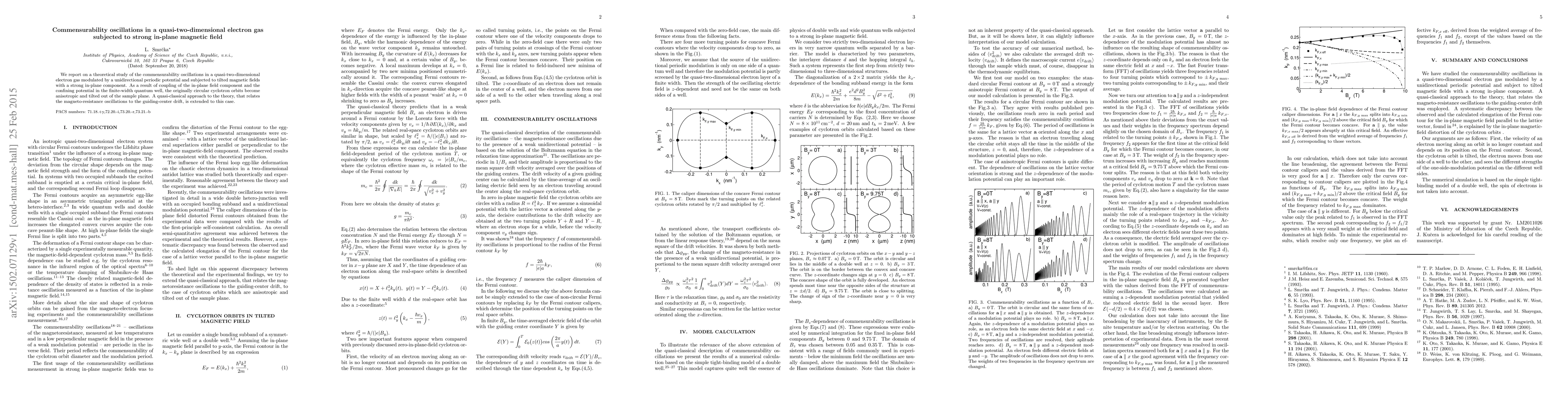 This paper investigates commensurability oscillations in a quasi-two-dimensional electron gas under strong in-plane magnetic fields, revealing anisotropic cyclotron orbits due to the coupling of the in-plane field and a periodic potential. A quasi-classical approach is used to link magneto-resistance oscillations to the guiding-center drift.
