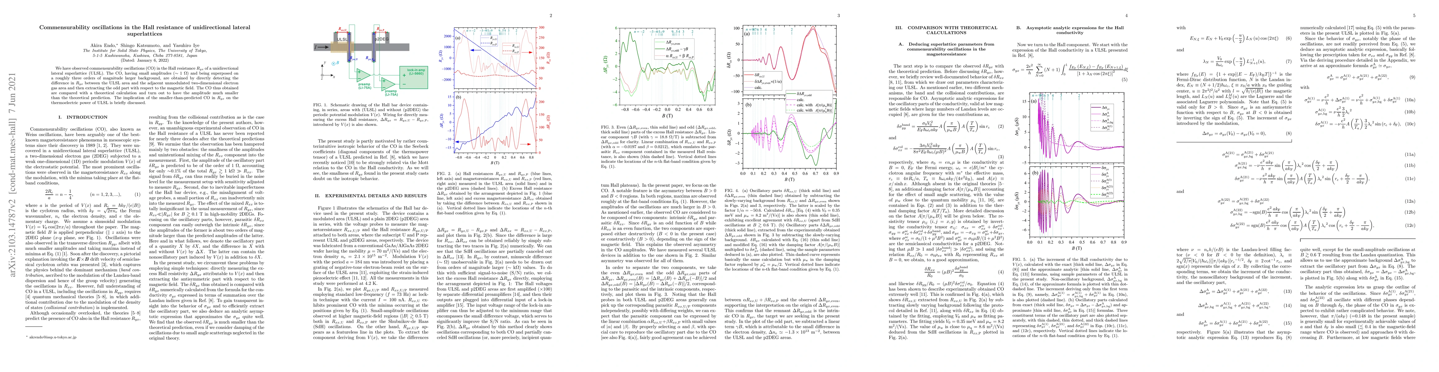 This paper reports the observation of commensurability oscillations in the Hall resistance of unidirectional lateral superlattices, noting their small amplitude and comparison with theoretical predictions. The study discusses the implications of these oscillations on the thermoelectric power of the superlattices.