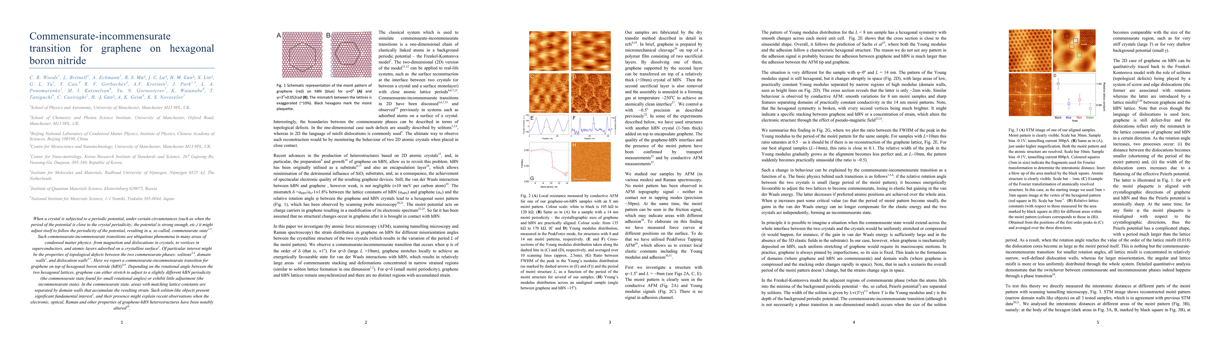 This study investigates the commensurate-incommensurate transition in graphene on hexagonal boron nitride, revealing how graphene adapts to varying rotational angles between the two lattices. The transition highlights the presence of domain walls in the commensurate state, which may explain altered electronic and optical properties observed in graphene-hBN heterostructures.