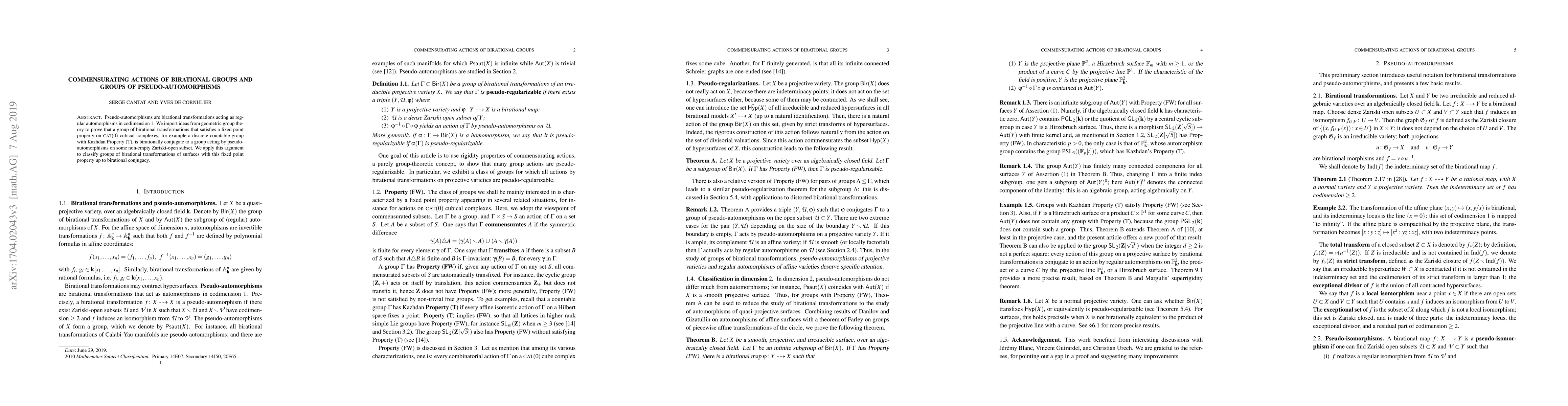 Pseudo-automorphisms are birational transformations acting as regular automorphisms in codimension 1. We import ideas from geometric group theory to prove that a group of birational transformations that satisfies a fixed point property on CAT(0) cubical complexes, for example a discrete countable group with Kazhdan Property (T), is birationally conjugate to a group acting by pseudo-automorphisms on some non-empty Zariski-open subset. We apply this argument to classify groups of birational transformations of surfaces with this fixed point property up to birational conjugacy.