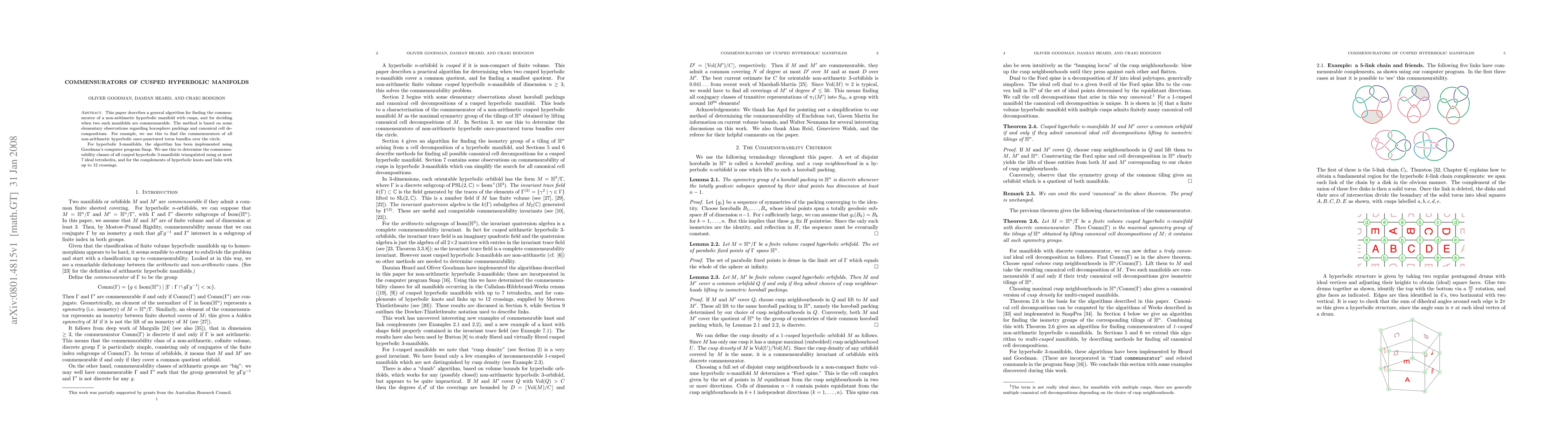 This paper presents an algorithm to determine the commensurator of non-arithmetic cusped hyperbolic manifolds and establish their commensurability using horosphere packings and canonical cell decompositions. The algorithm has been implemented in Snap to analyze hyperbolic 3-manifolds and knot complements.