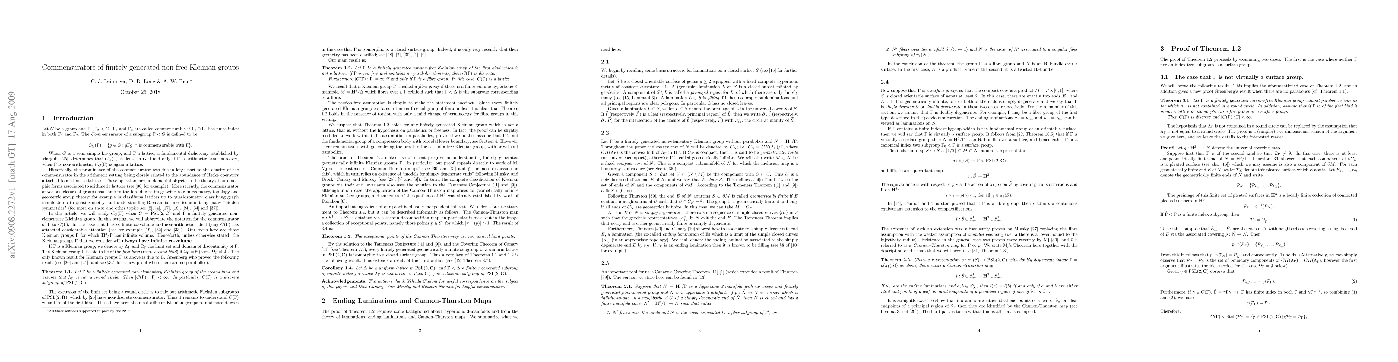Research shows that for non-free finitely generated Kleinian groups without parabolics, if their limit set is not a round circle, the commensurator group in PSL(2,C) is discrete with finite index unless it's a fiber group.