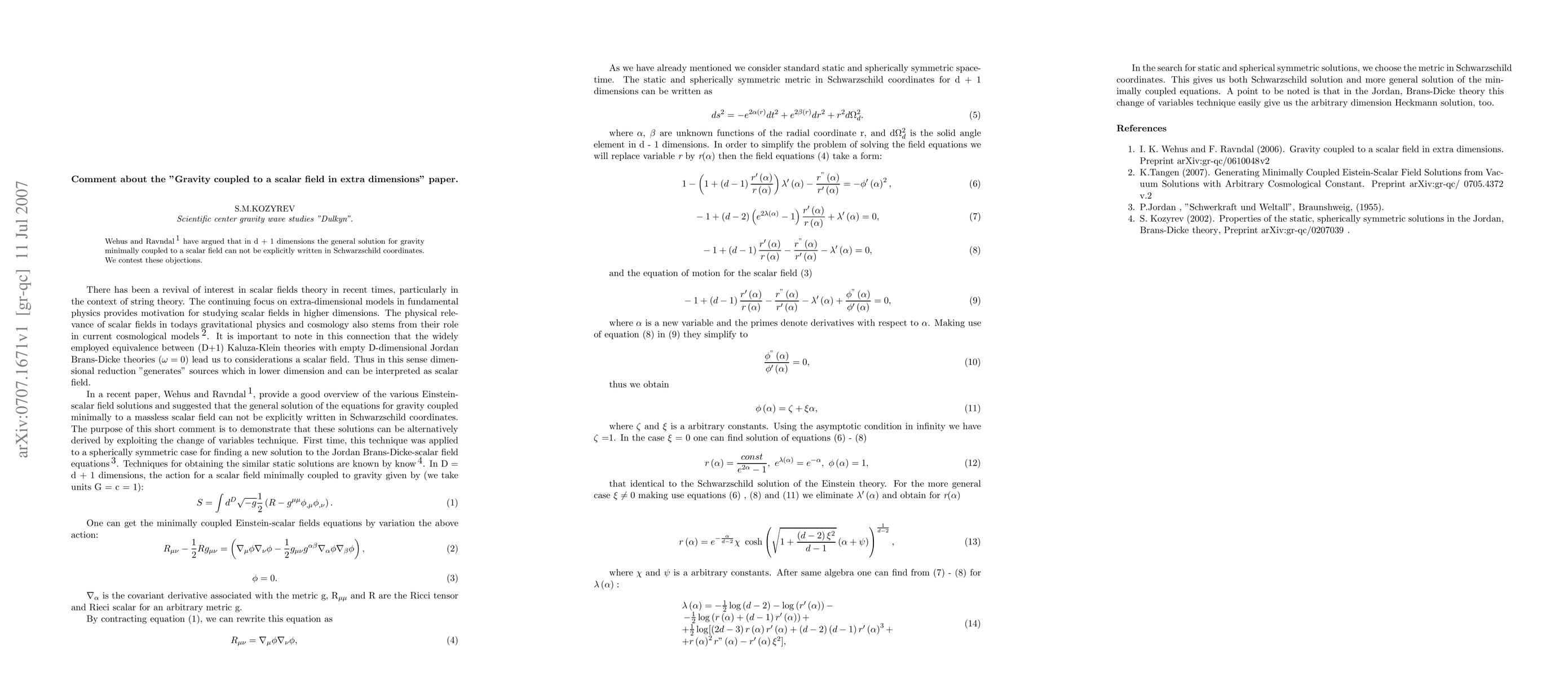 Wehus and Ravndal have argued that in d + 1 dimensions the general solution for gravity minimally coupled to a scalar field can not be explicitly written in Schwarzschild coordinates. We contest these objections.