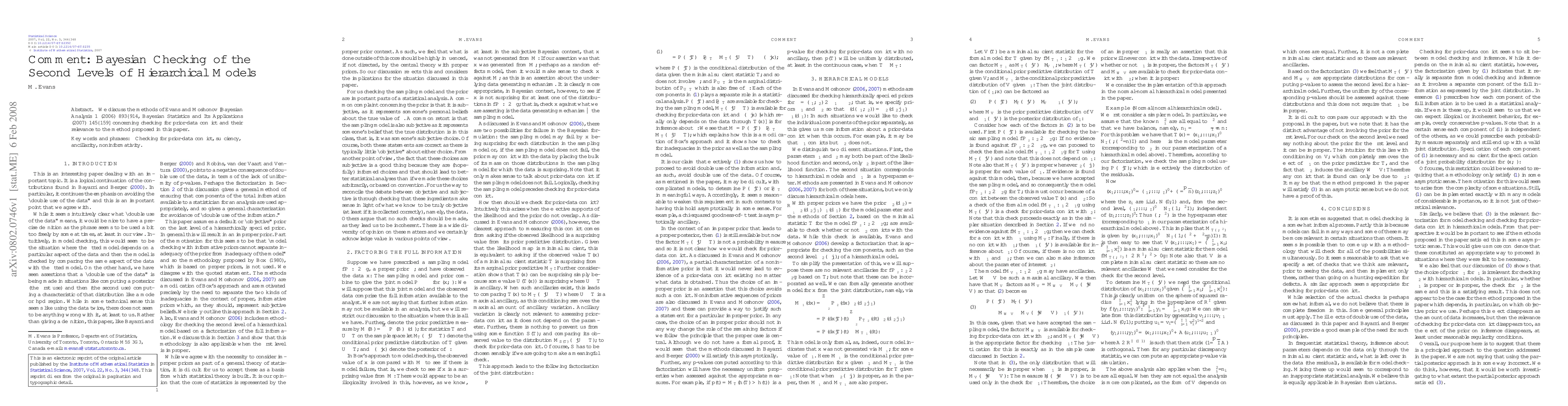 We discuss the methods of Evans and Moshonov [Bayesian Analysis 1 (2006) 893--914, Bayesian Statistics and Its Applications (2007) 145--159] concerning checking for prior-data conflict and their relevance to the method proposed in this paper. [arXiv:0802.0743]