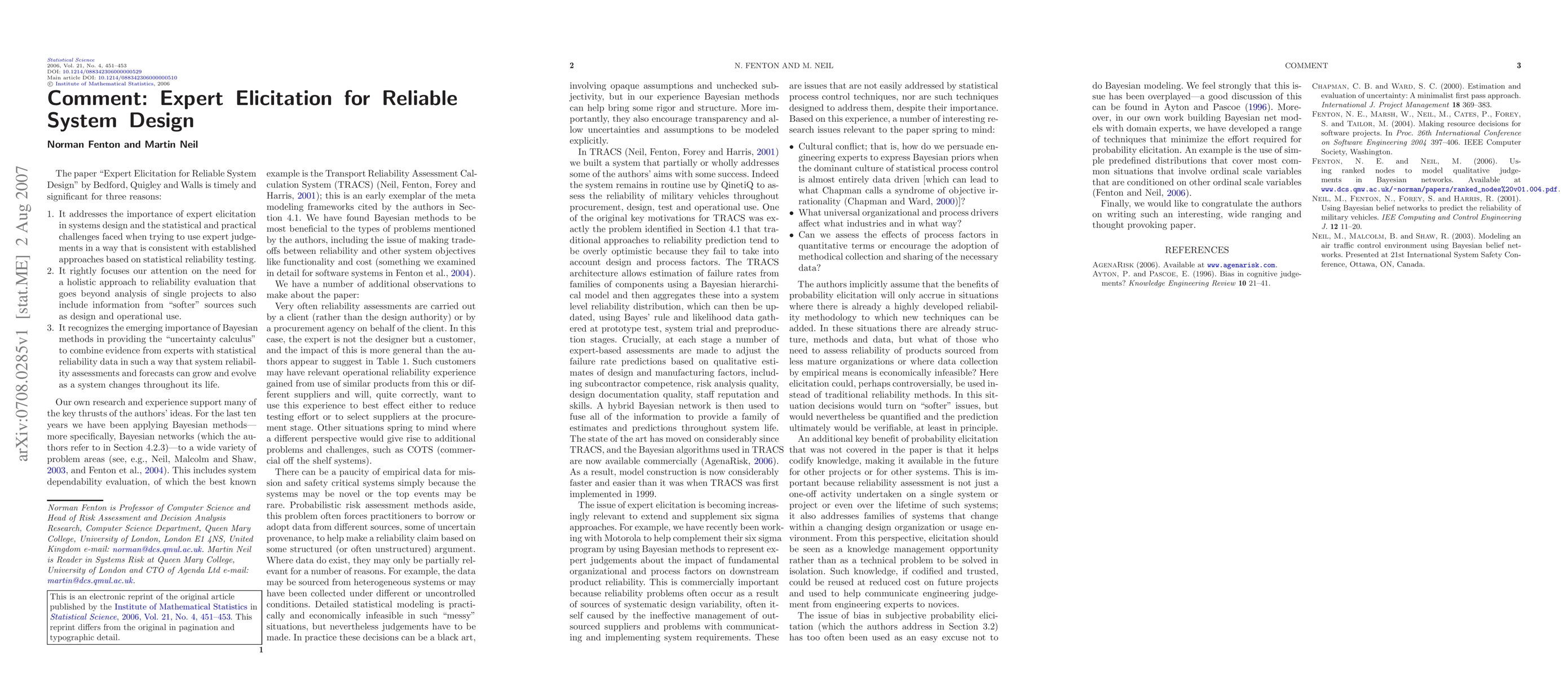 Comment: Expert Elicitation for Reliable System Design [arXiv:0708.0279]