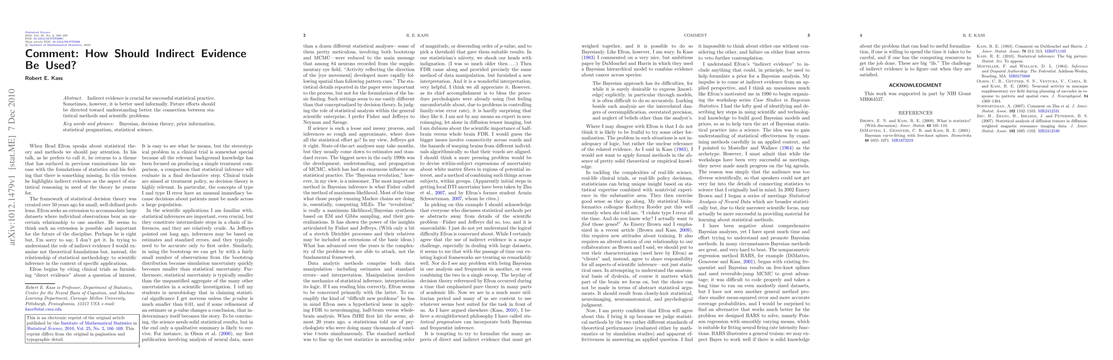 Indirect evidence is crucial for successful statistical practice. Sometimes, however, it is better used informally. Future efforts should be directed toward understanding better the connection between statistical methods and scientific problems. [arXiv:1012.1161]
