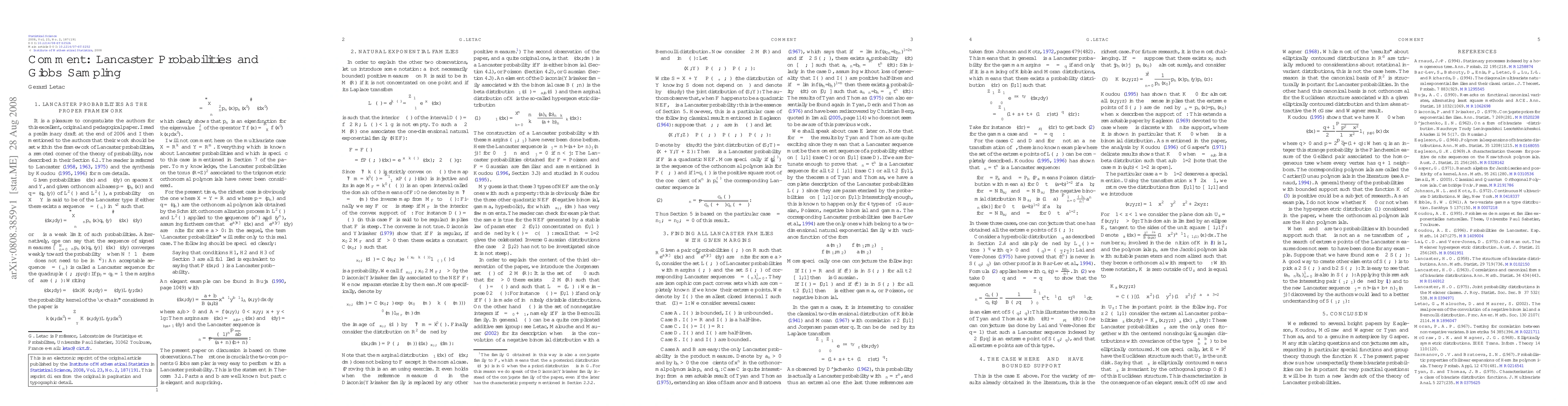 This comment critiques the original paper on Lancaster probabilities and Gibbs sampling, highlighting methodological strengths and weaknesses, and suggesting areas for improvement in the application of these statistical techniques. It aims to refine the understanding and implementation of these probabilistic methods in complex sampling scenarios.