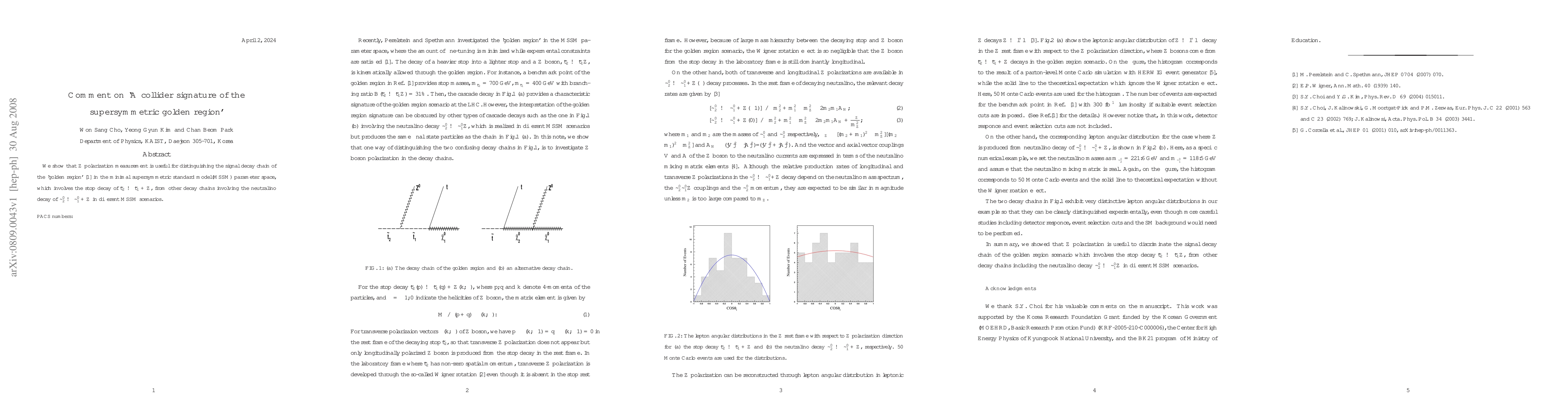 We show that $Z$ polarization measurement is useful for distinguishing the signal decay chain of the `golden region' in the minimal supersymmetric standard model(MSSM) parameter space, which involves the stop decay of $\tilde t_2 \to \tilde t_1 + Z$, from other decay chains involving the neutralino decay of $\tilde\chi_2^0 \to \tilde\chi_1^0 + Z$ in different MSSM scenarios.