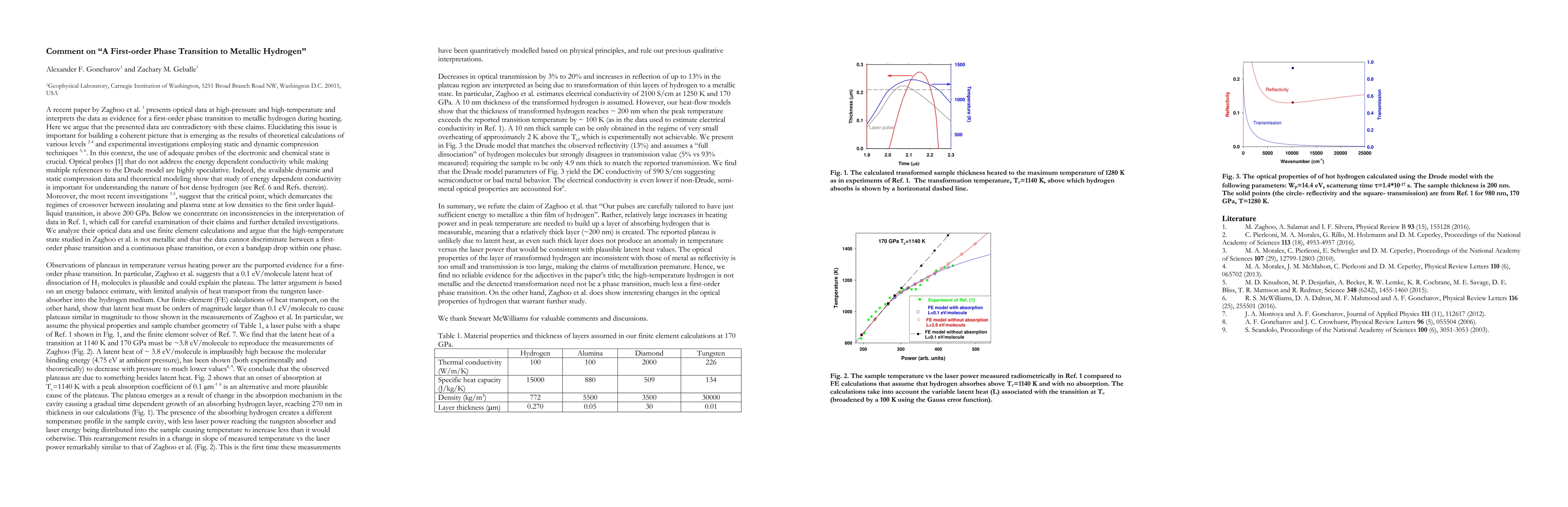 A recent paper by Zaghoo et al. presents optical data at high-pressure and high-temperature and interprets the data as evidence for a first-order phase transition to metallic hydrogen during heating. Here we argue that the presented data are contradictory with these claims. Elucidating this issue is important for building a coherent picture that is emerging as the results of theoretical calculations of various levels and experimental investigations employing static and dynamic compression techniques. In this context, the use of adequate probes of the electronic and chemical state is crucial. Optical probes that do not address the energy dependent conductivity while making multiple references to the Drude model are highly speculative. Indeed, the available dynamic and static compression data and theoretical modeling show that study of energy dependent conductivity is important for understanding the nature of hot dense hydrogen. Moreover, the most recent investigations suggest that the critical point, which demarcates the regimes of crossover between insulating and plasma state at low densities to the first order liquid-liquid transition, is above 200 GPa. Below we concentrate on inconsistencies in the interpretation of data in Zaghoo et al, which call for careful examination of their claims and further detailed investigations. We analyze their optical data and use finite element calculations and argue that the high-temperature state studied in Zaghoo et al. is not metallic and that the data cannot discriminate between a first-order phase transition and a continuous phase transition, or even a bandgap drop within one phase