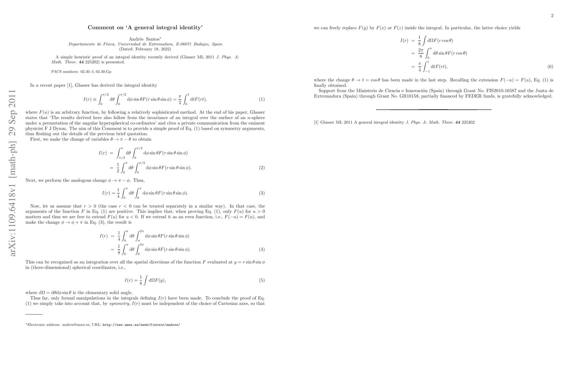 A paper provides a simple heuristic proof for an integral identity derived in 2011, confirming its validity.