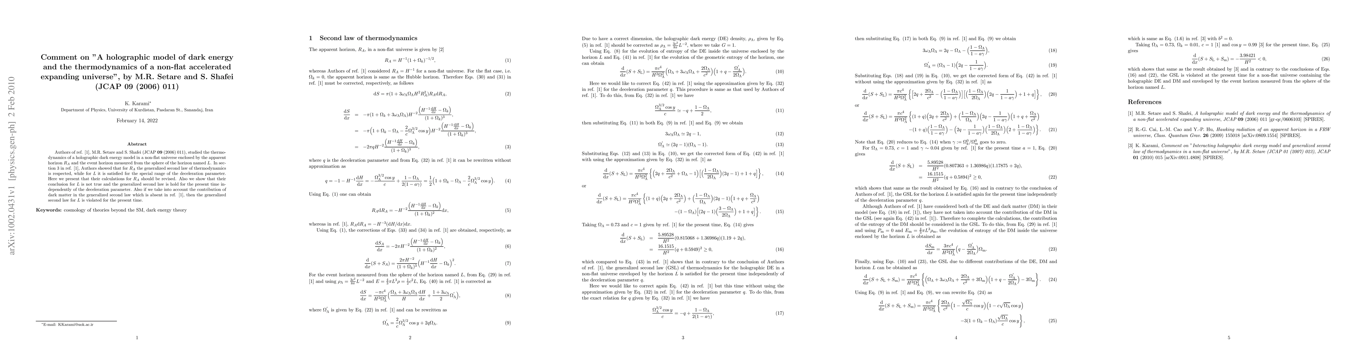 This paper critiques a previous study on holographic dark energy in non-flat expanding universes, highlighting errors in calculations for the apparent horizon and event horizon, which affect the validity of thermodynamic laws.