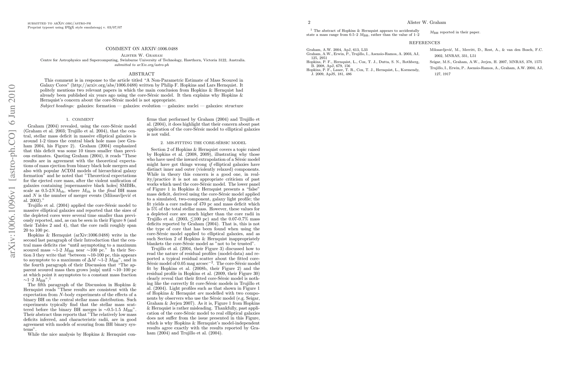 This comment is in response to the article titled "A Non-Parametric Estimate of Mass Scoured in Galaxy Cores" (arXiv:1006.0488) written by Hopkins and Hernquist. This comment politely mentions two relevant papers in which the main conclusion from Hopkins & Hernquist had already been published six years ago using the core-Sersic model. It then explains why Hopkins & Hernquist's concern about the core-Sersic model is not valid.