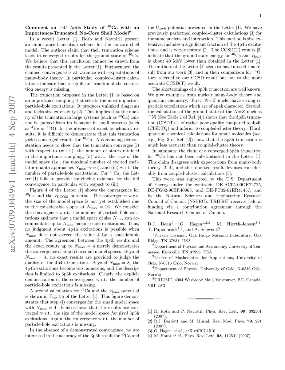 This paper critiques the convergence claims of Roth and Navratil's importance-truncated no-core shell model for 40-Ca, arguing that their results do not support the assertion of convergence and that coupled-cluster calculations suggest a substantial portion of correlation energy is still unaccounted for.