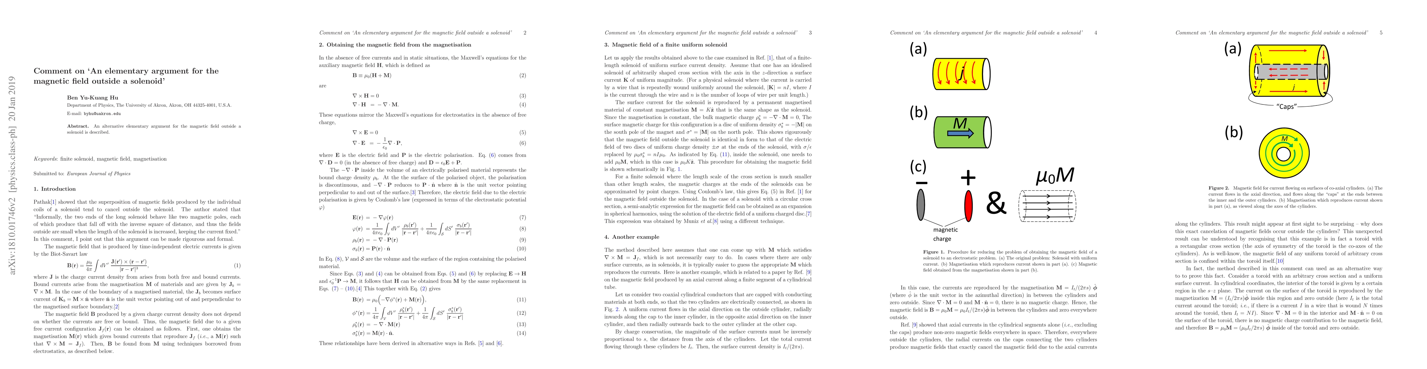 This paper presents a simplified, alternative approach to demonstrating the magnetic field outside a solenoid, aiming to provide a more intuitive understanding of the phenomenon. The method focuses on fundamental principles to elucidate the magnetic field's behavior without complex calculations.