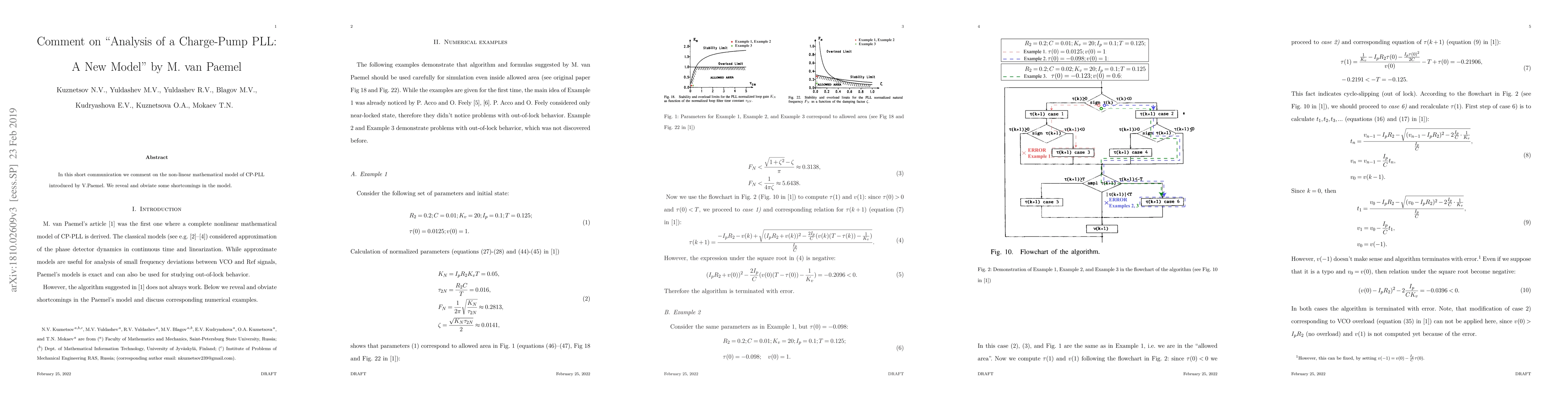 In this short communication we comment on the non-linear mathematical model of CP-PLL introduced by V.Paemel. We reveal and obviate shortcomings in the model.