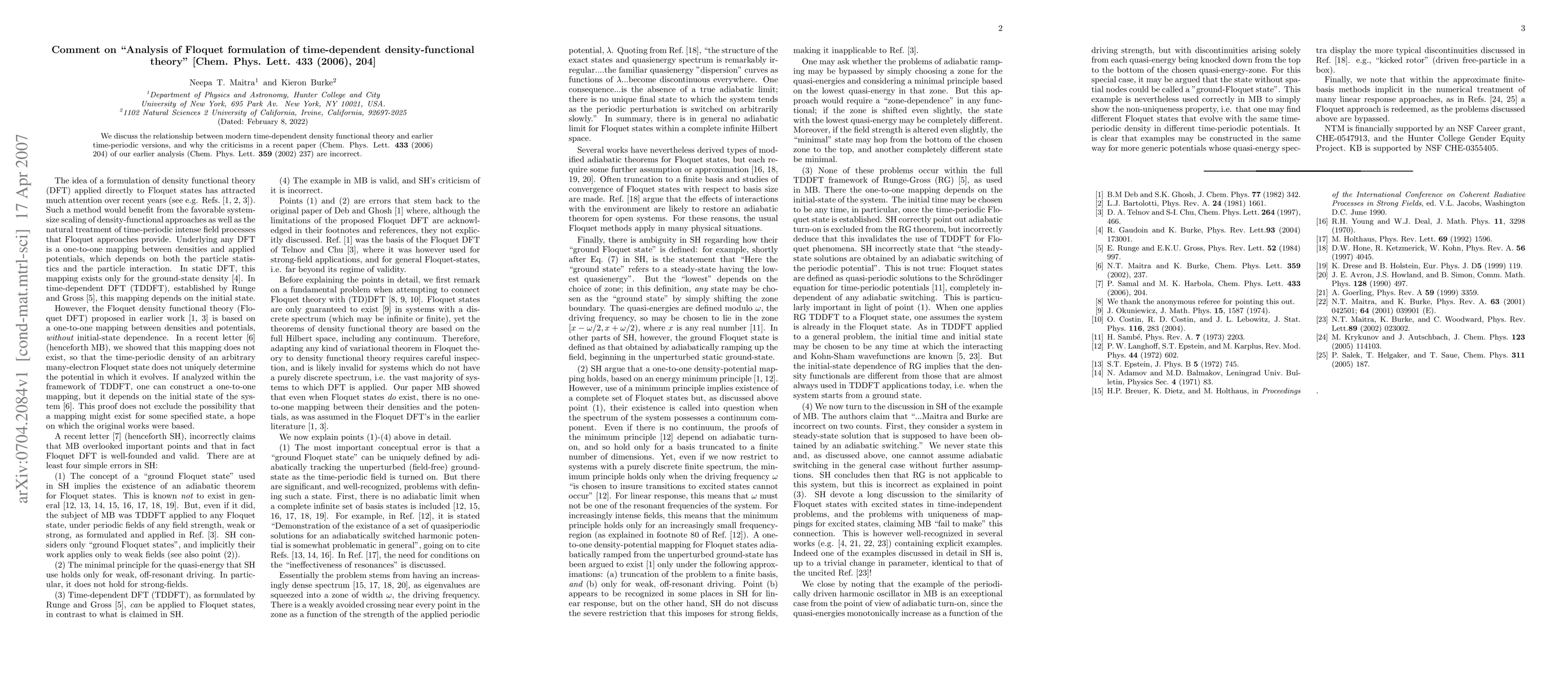 We discuss the relationship between modern time-dependent density functional theory and earlier time-periodic versions, and why the criticisms in a recent paper (Chem. Phys. Lett. {\bf 433} (2006) 204) of our earlier analysis (Chem. Phys. Lett. {\bf 359} (2002) 237) are incorrect.
