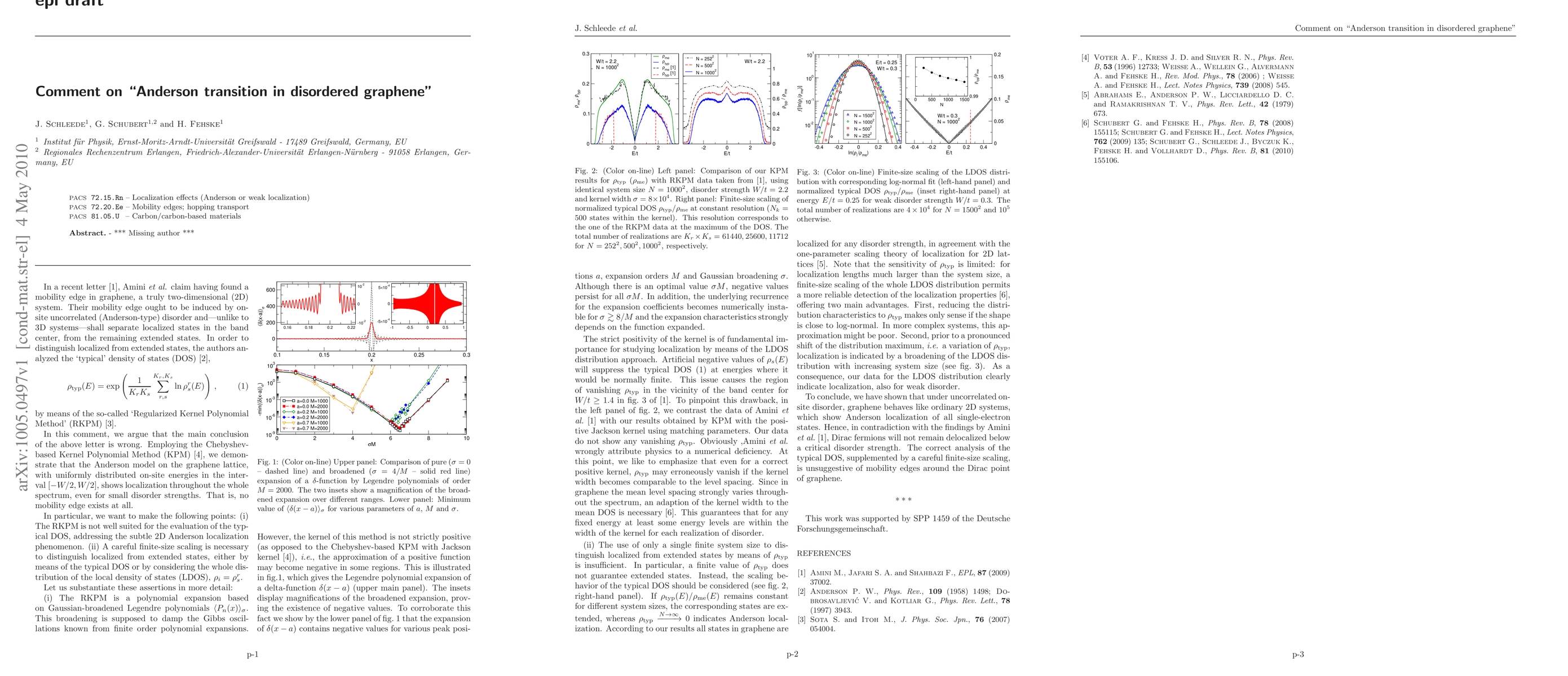 We comment on a recent letter by Amini et al. (EPL 87, 37002 (2009)) concerning the existence of a mobility edge in disordered graphene.