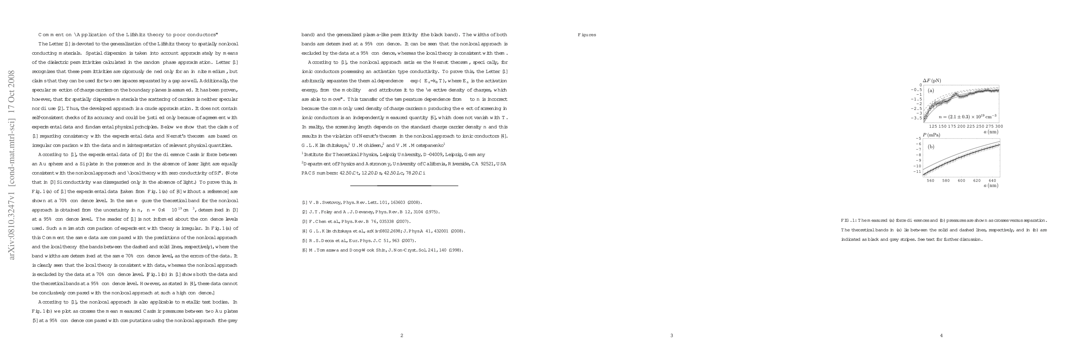 Recent Letter by V. B. Svetovoy [Phys. Rev. Lett. v.101, 163603 (2008), arXiv:0809.3901] claims that the Lifshitz theory combined with spatially nonlocal dielectric permittivities is consistent with the experimental data and Nernst's theorem. We prove that these claims are incorrect. They are based on irregular comparison with the data and misinterpretation of relevant physical quantities.